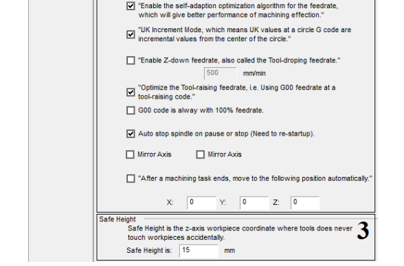 Едем дальше. Все вышеупомянутые настройки что делать Z при Паузе / Стоп неактуальны так как станок полностью обесточивается и он никак не помнит что было сделано до включения питания. А значит если и есть где-то настройка на поднятие шпинделя, то возможно к ней может и не быть доступа.