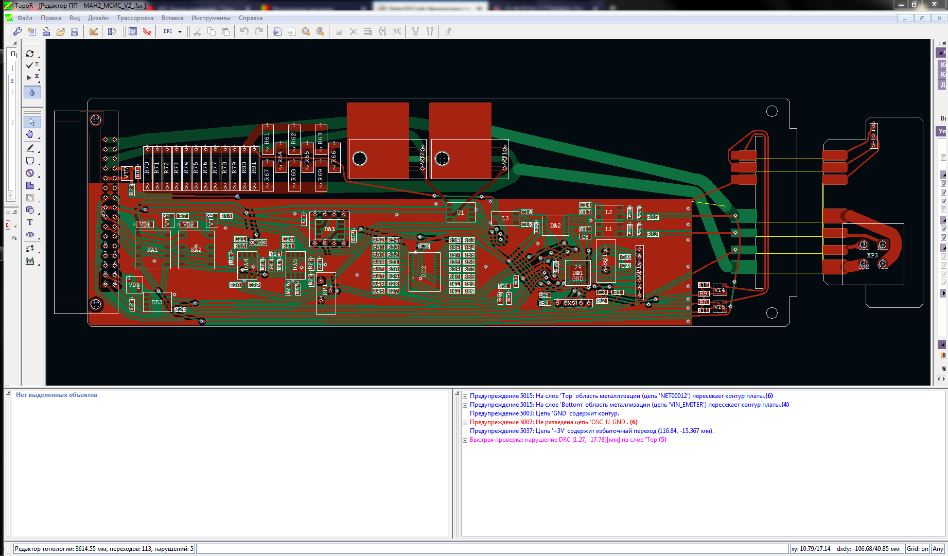 Я вижу, что Вы переходы организовали через ПО, а не через КП. И при этом плата спроектирована на TopoR-е.