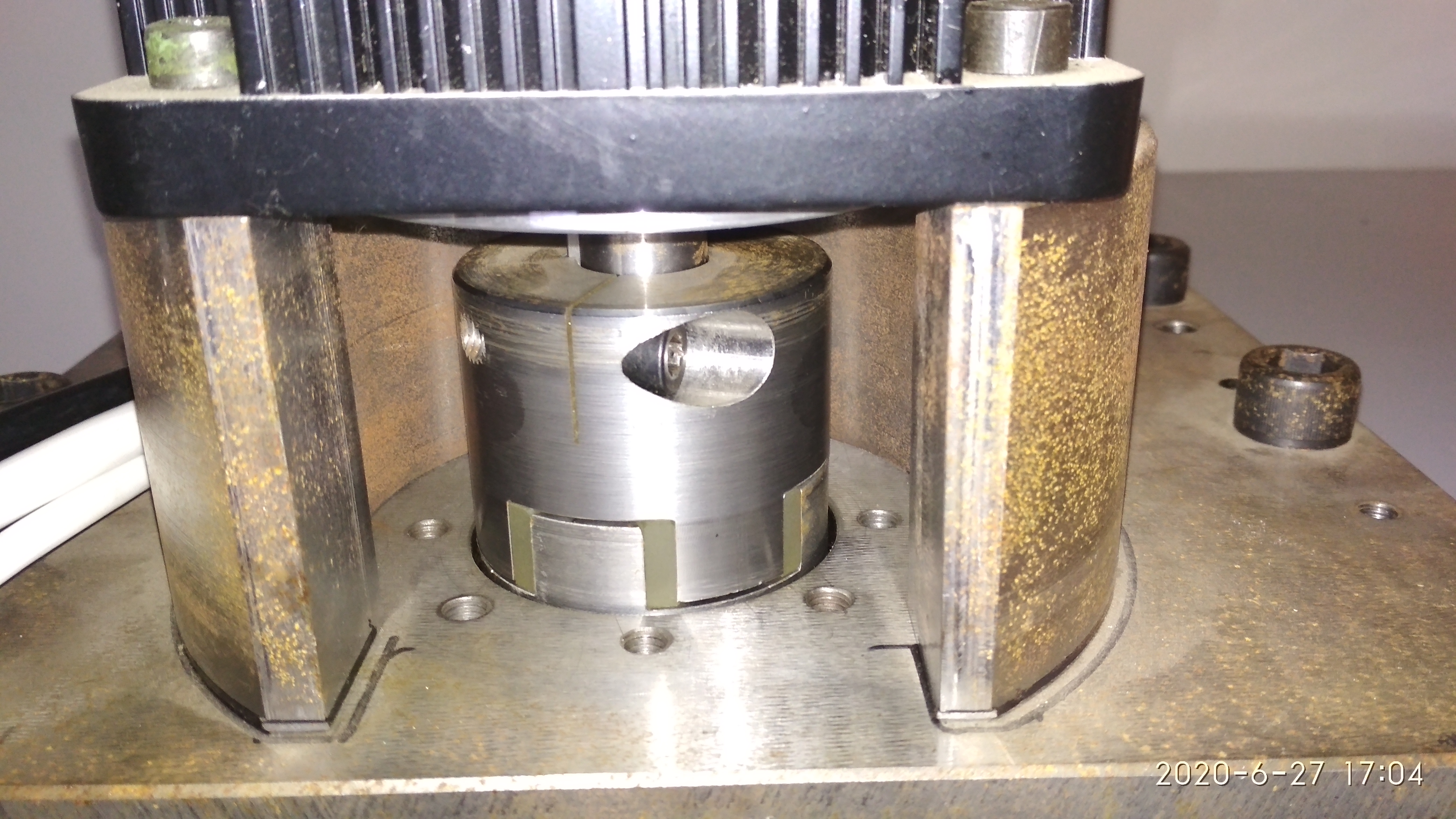 Так получилось что я накосячил когда заказывал серводвигатели для станка. На ось Z взял без тормоза, думал что сделаю какую-нибудь автоматическую штуковину, которая будет прижимать шпиндельную голову к салазкам колонны, как это сейчас реализовано, но поворотом рычага. Да и думал что торможение надо будет только пред отключением станка от сети, типа выехал вверх, зажал вручную тормоз и отключил питание. Но так как с сервомотором и драйвером есть кое-какие проблемы и драйвер уходит в перегрузку( http://www.cnc-club.ru/forum/viewtopic. ... 38#p571838 ), то понял что тормоз нужен автоматический, который всегда на готове. Я уже индикатор положил и 2 тв. спл. фрезки подломил из-за драйвера. Видел похожую тему про "Нестандартный тормоз для ШВП", сам подумал, и в голову пришло 2 варианта реализации данной идеи. Самое подходящее место для его установки это муфта между валом мотора и швп. Муфта в диаметре 65мм. Расстояние до стенки стойки сервомотора 23мм на сторону.