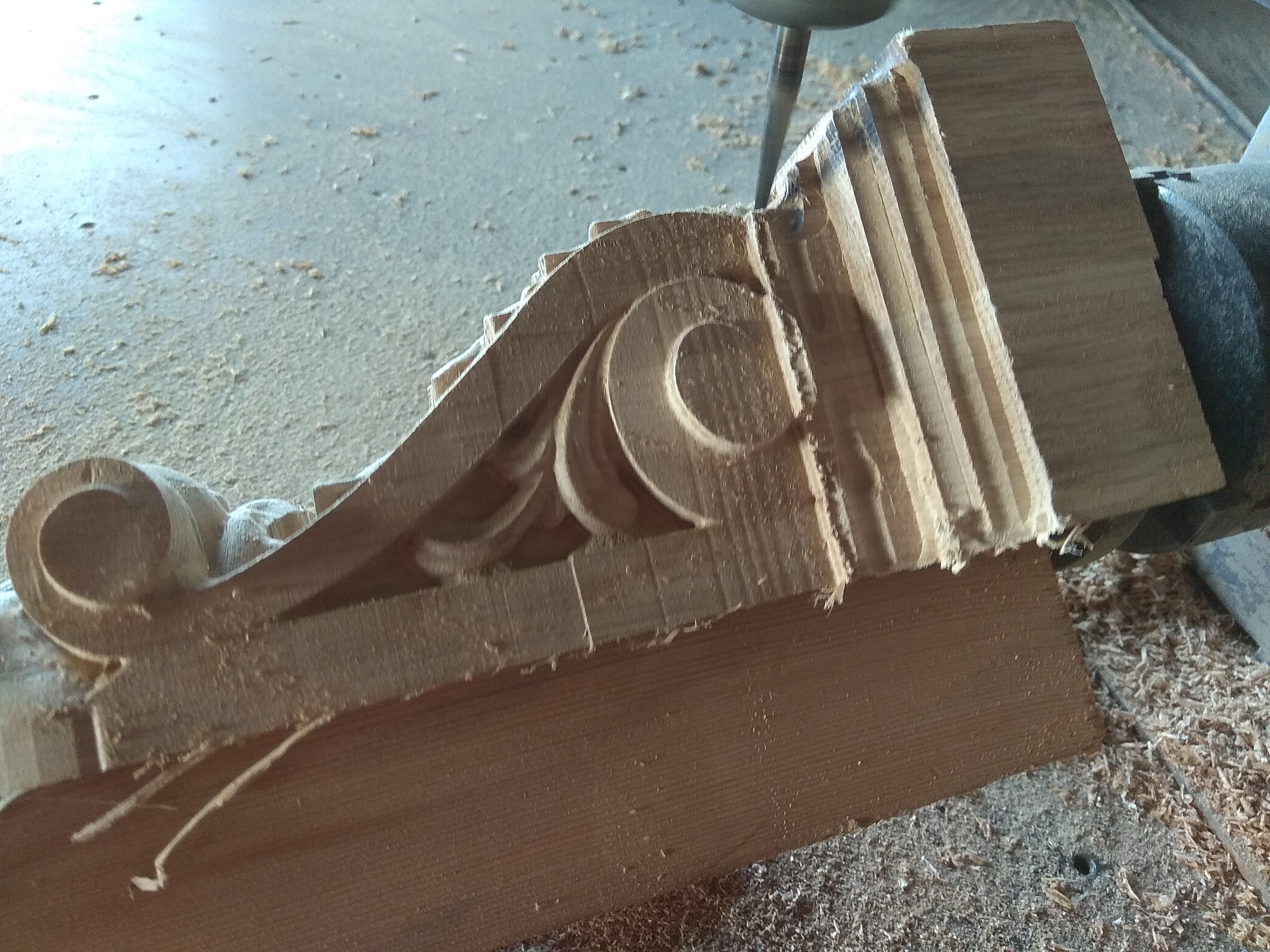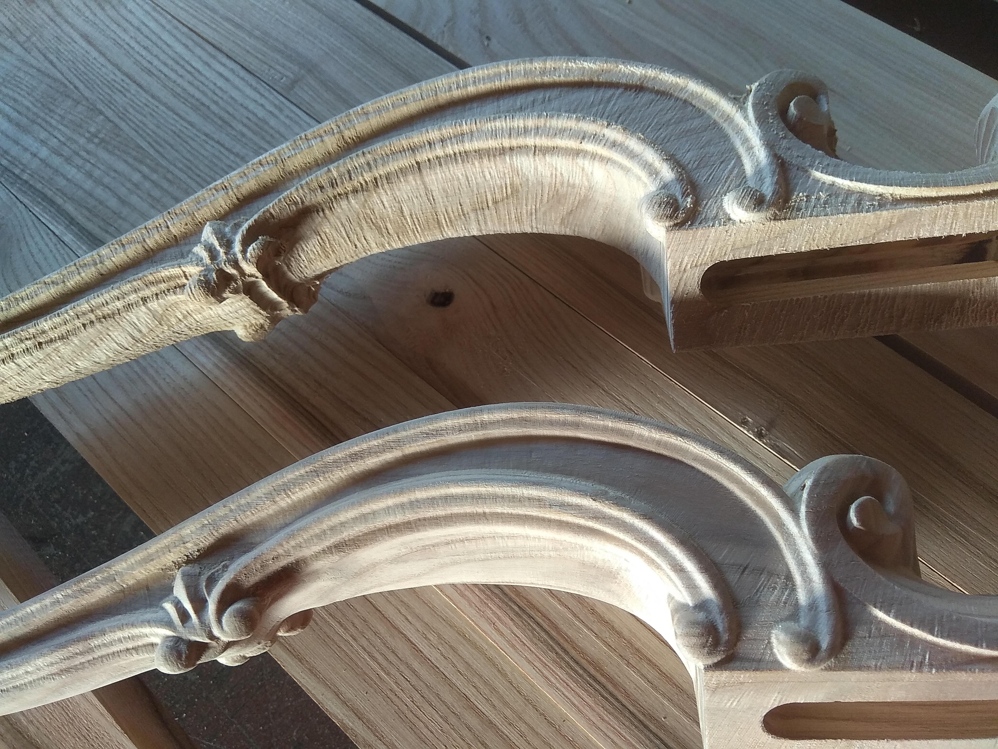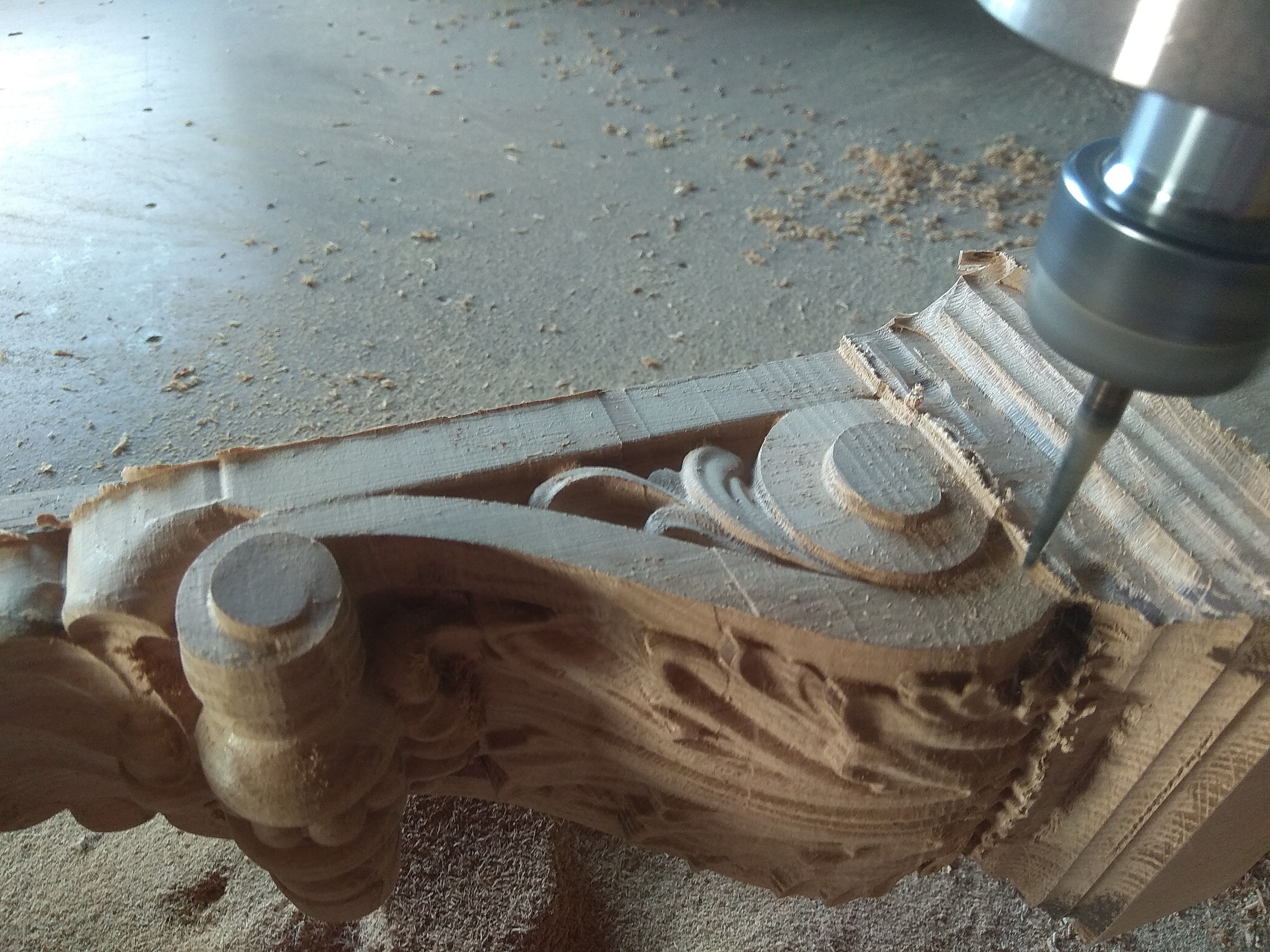 На четырех полноценных координатах последнее время стал наблюдать неприятный момент - качество резьбы неважное, как бы не гладкое, а волнистое. Только что семь часов станок отработал, потом напряжение в сети мигнуло и комп перегрузился. Я восстановил координаты и запустил станок в работу примерно с того места, где произошол сбой. Потом заметно упало качество резьбы. В поворотке есть небольшой люфт, пол градуса. Но до сбоя было все гладко. В начале g-кода я уже прописал G64 P0.1 - это на ножке. На кронштейне пилилось без G64 P0.1
