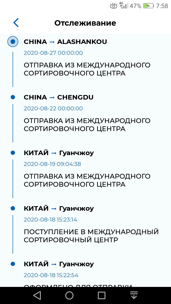 Задержка на складе консолидации будет если идут несколько мелких посылок примерно в одно время. На этот склад они приходят в разнобой, а потом либо в заказах на Али всем меняется трек на один новый, либо просто все дальше идут под своими номерами, но все вместе.