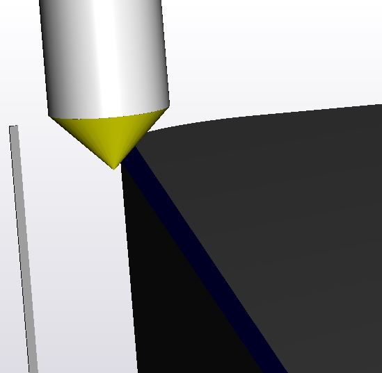 Распознает правильно, только вот положение инструмента слегка не правильное. Настроек для изменения в этой траектории не нашел. Подскажите как можно исправить положение инструмента относительно кромки, на которой надо снять фаску.