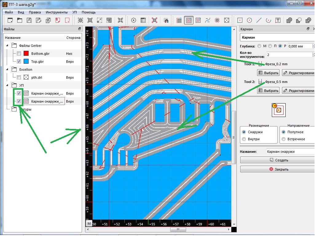 Полный нубас в теме фрезеровки плат, но есть ряд пониманий благодаря пердолингу 3д принтеров и немного попрактиковался на 3018 с фанерой, алюминием, лазерной гравировкой. С импортом проблем не возникло, на вопросы ответы были найдены, но не могу пока точно узнать - чем "профиль" отличается от "кармана"? Карман - чтоб выбирать полигоны, например пятаки после маски?