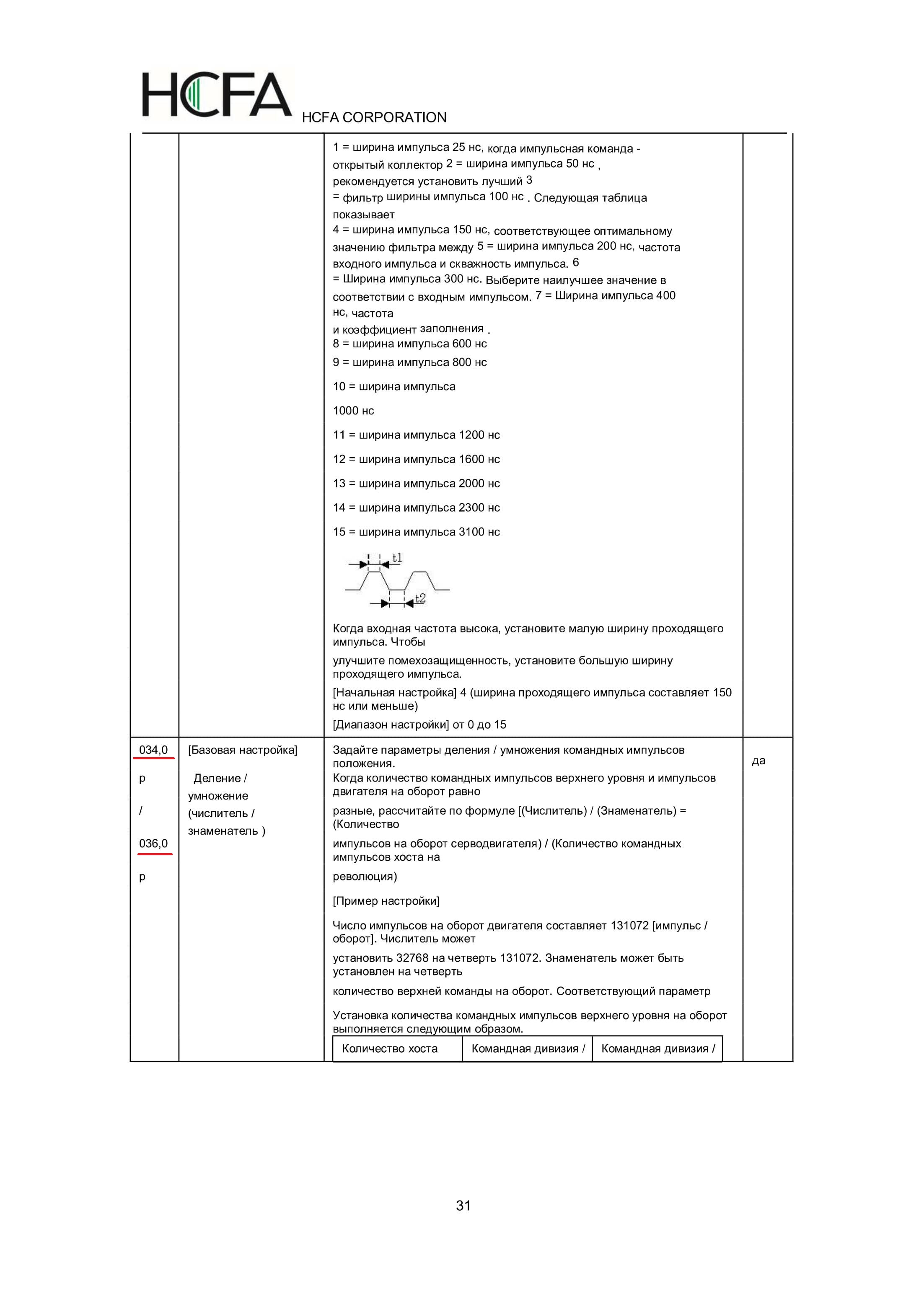 Всем привет! Купил на Taobao б/у 400вт серводвигатель и привод Производитель HCFA модель SV-X3DA040A-D / SV-X3MH040A-N2LN Этот сервопривод с демонтажа и китайцы его уже настроили Подключил по схеме step dir всё работает то есть вращается Вопрос к спецам как правильно настроить сервопривод в режиме позиционирования Есть два пункта в которых я запутался это 34 пункт и 36 Числитель и знаменатель они отвечают за правильное позиционирования Китайцы вписали в 34 параметр 32768 а 36 параметр 1250 Помогите разобраться у меня швп 1605 за один оборот проходит 5 мм что мне вписать в 34 и 36 параметр? ссылка на manual http://hncelectric.com/upload/201604/24 ... 344408.pdf ссылка на магазин https://item.taobao.com/item.htm?spm=a1 ... dmg8j26111