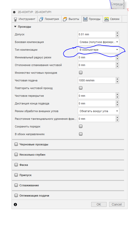 В каждой операции есть такая опция, тип коррекции. Вариант "на компьютере" это вводишь точный диаметр, и два варианта "левая" и "правая" это уже в чпу для наружных и внутренних контуров. Только надо проверить, что там постпроцессор наколбасит, возможны нюансы.