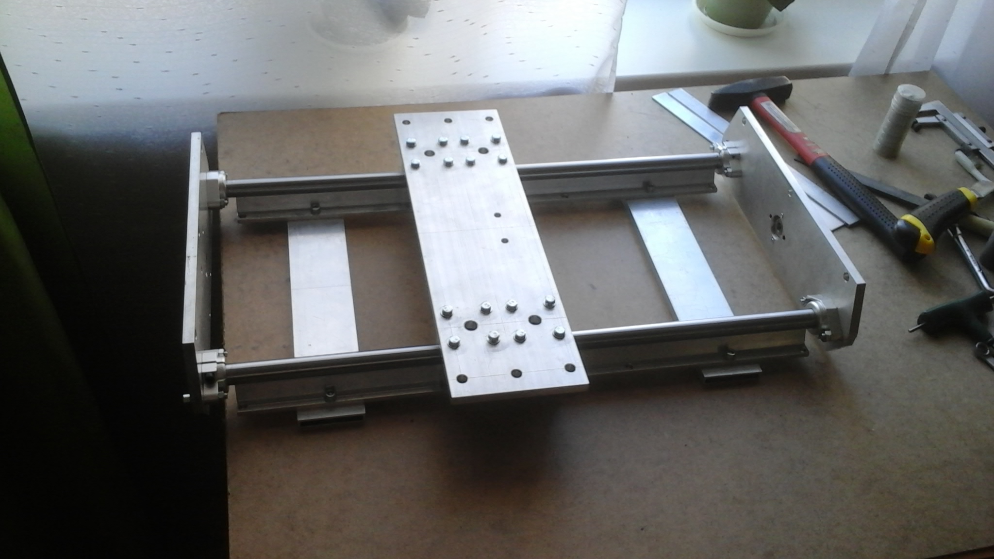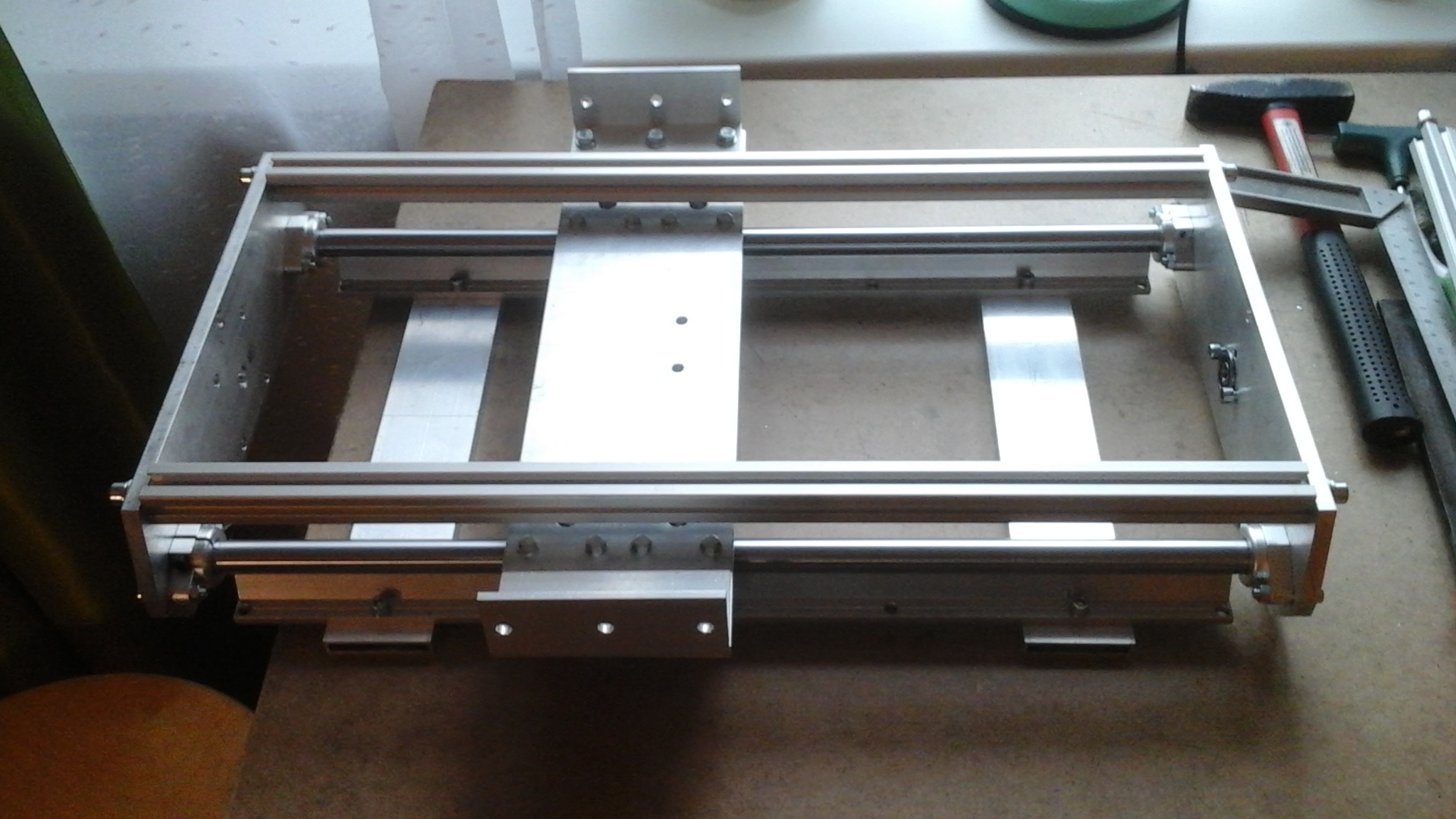 Станок и так прост до дури, все изготавливается на коленке. Да и прочности в нем хватает, он уже не первый. Но ваша идея, VITZIN, может сгодится, главное, чтобы все скомпоновалось в рамках размеров продающихся хлыстов (полос) алюминия. Соглашусь, что лишнее железо из станков нужно выкидывать!