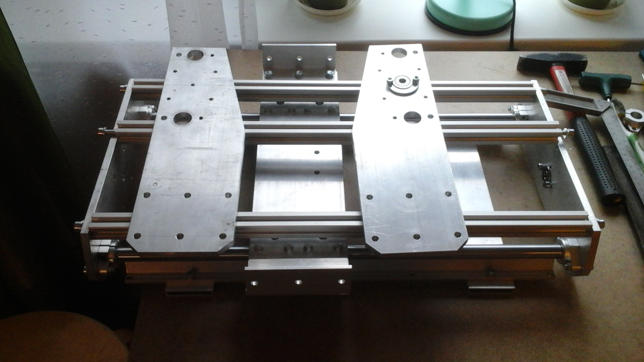 Станок и так прост до дури, все изготавливается на коленке. Да и прочности в нем хватает, он уже не первый. Но ваша идея, VITZIN, может сгодится, главное, чтобы все скомпоновалось в рамках размеров продающихся хлыстов (полос) алюминия. Соглашусь, что лишнее железо из станков нужно выкидывать!
