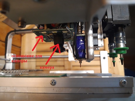 USB камера установлена 2 мегапик объектив 120гр , брал ради благих целей, блоху подковать. Камеру вместо 1920х1080 использую с разрешением 640х480 пикселей. При большем разрешении двигать осьZ по плате не удобно.