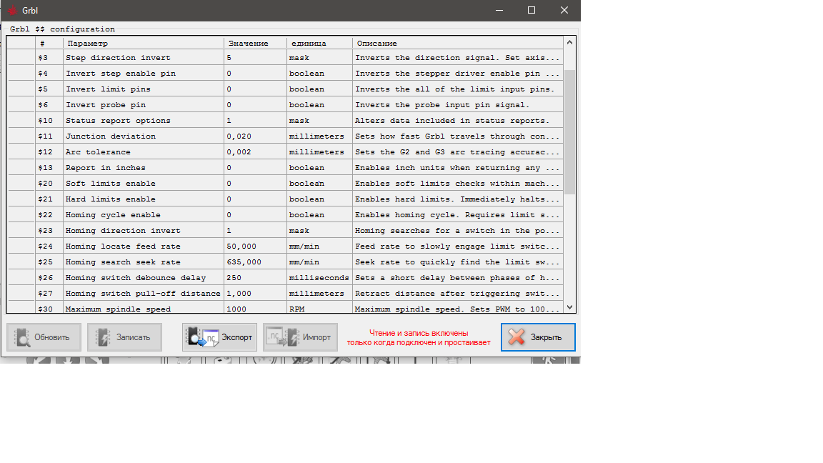 GRBL настройки: http://blogandbux.blogspot.com/2018/07/ ... revod.html
