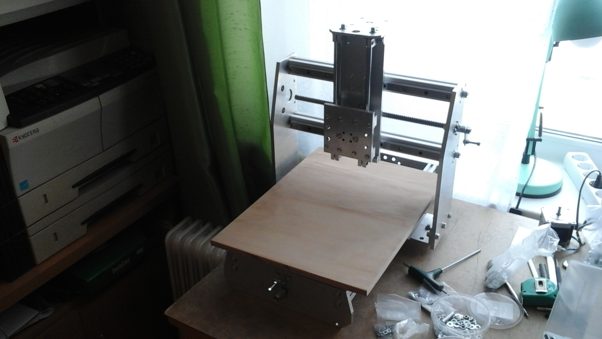 Покуда на нашей ветке идет дискуссия о "пожаро-" и прочих видах "безопасностей", неспешно ваяется очередной по настоящему настольный станок ЧПУ в новой версии. Оси Х и У сейчас исполнены на квадратных рельсах, ось Z в прежней версии, везде стоят ШВП1204. Внешние габариты без ШД - 500х360мм, высота 420мм. Рабочая зона будет 240х330х100мм, вес станка без шпинделя ожидается на 1.5-2кг меньше прежней версии, т.е. примерно 15-16кг.