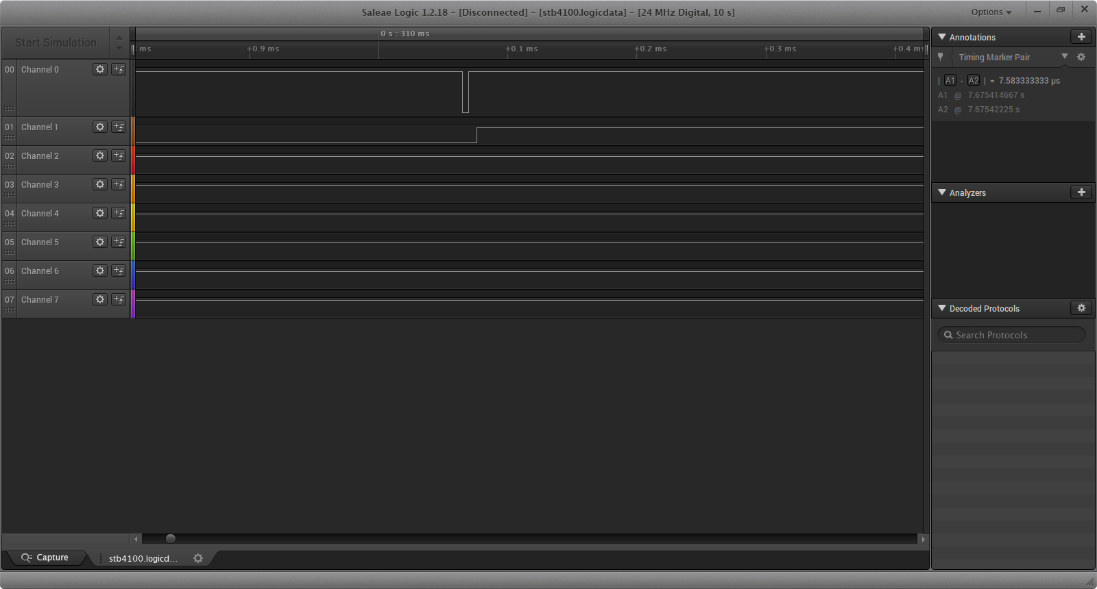 Куча иголок до 41.7нс длиной, меньше логический анализатор не видит: