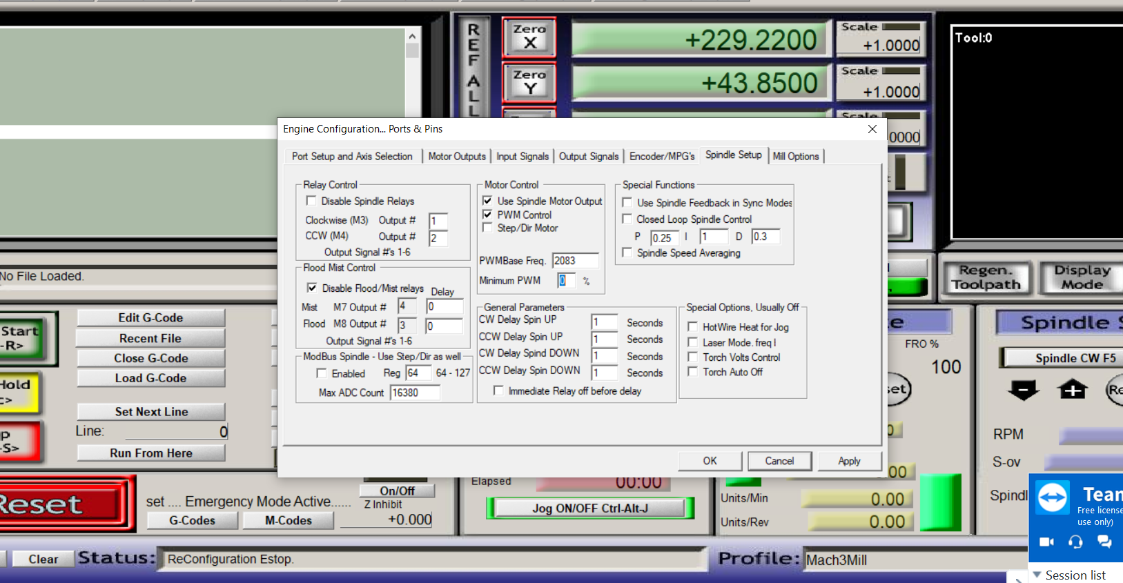 Проблема с настройкой регулировки оборотов шпинделя через Mach3.