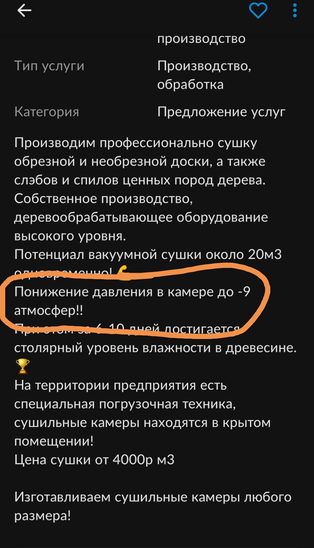 И как при всем этом может существовать -9 атмосфер (от одного атмосферного давления) - в толк не возьму. Скорее всего чья-то опечатка по неграмотности и на самом деле имелось ввиду понижение давления при сушке древесины до абсолютного 0.1 атм, что является -0.9 атм относительного.