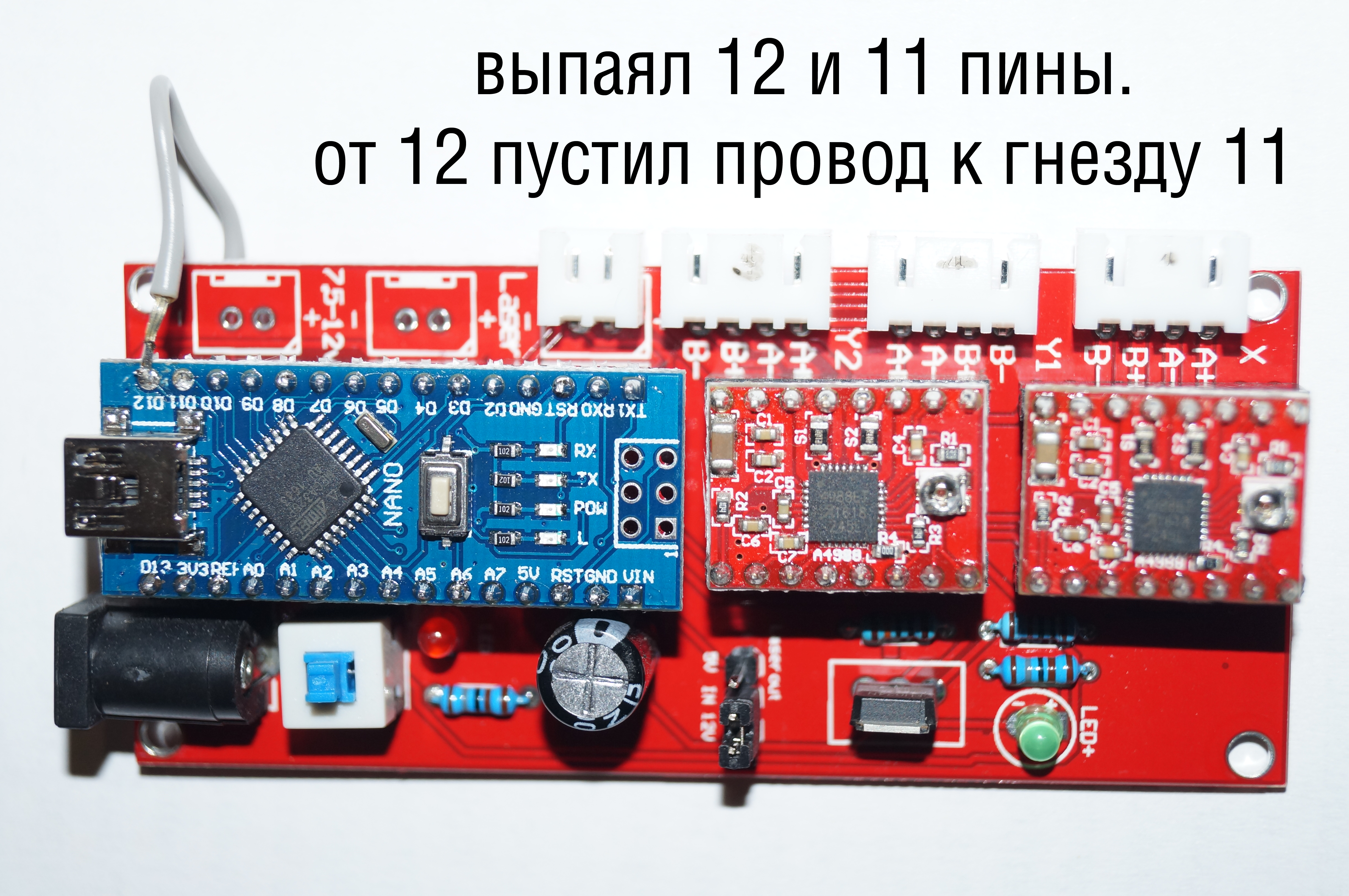 Доработка у, вас, не правильно сделана. Пин D11 выпаивать не нужно, выпаивается только D12. Далее, на плате замыкаются D11 и D12. После такой доработки, обязательно нужно прошить контроллер до версии 1.1 и все будет работать.