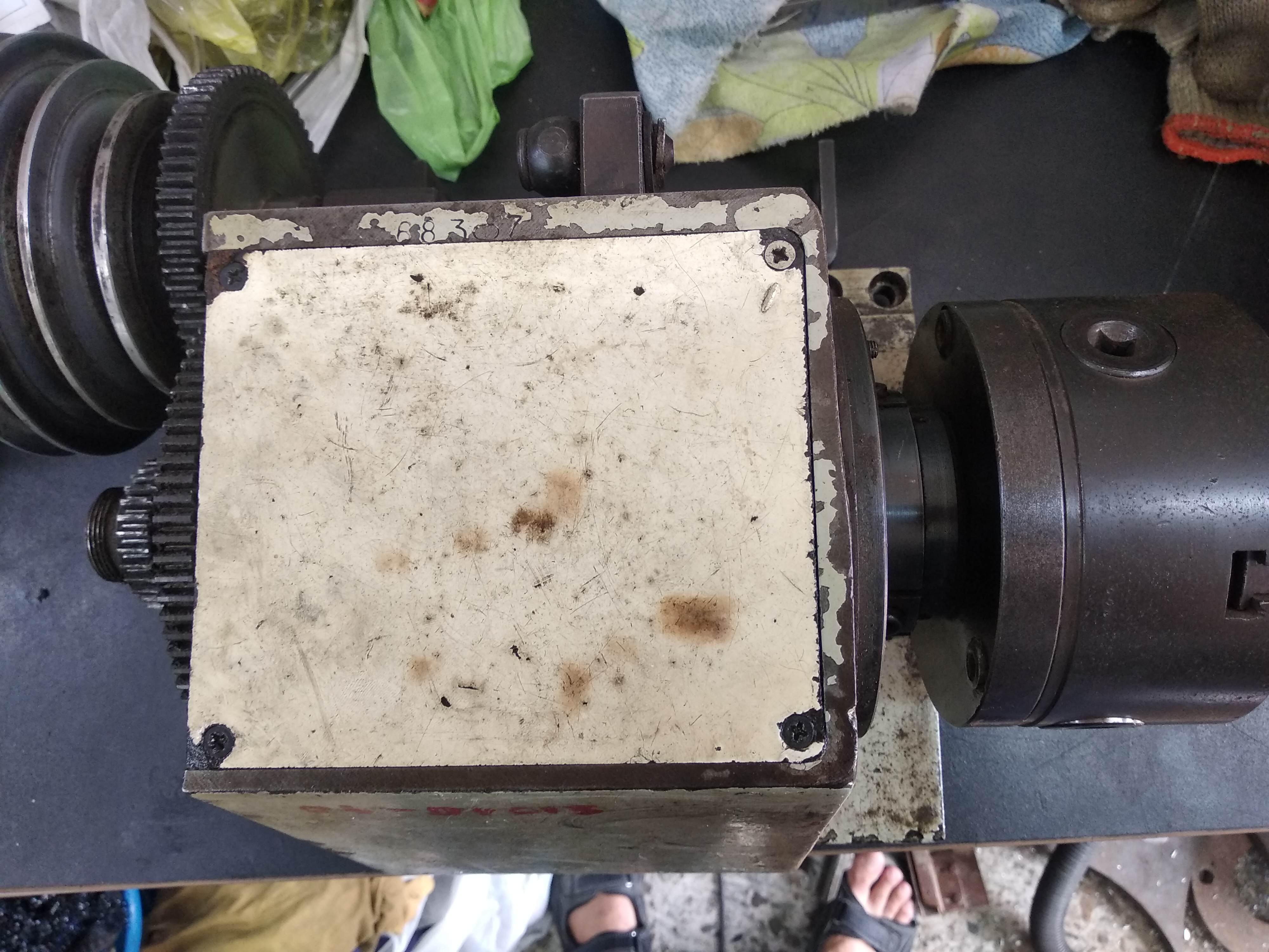 Так как рельс нужной длины нет, занялся пока передней бабкой. Достал из нее ооооочень много литола. Не поскупились. Конус в шпинделе чистый, патрон токарный в переборку.
