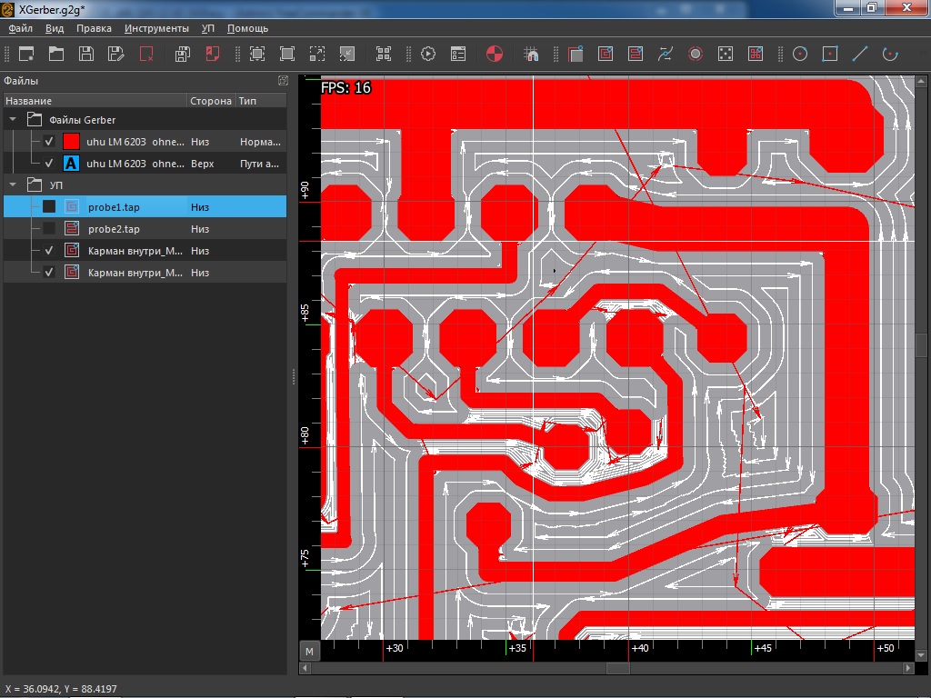 Я об этом на скриншоте и написал в жёлтой всплывашке. Что при заполнении больше 50ти % визуализация не отображает пропуски фрезеровки, пока.YuryV писал(а): Не прорезы появились при работе 2 фрезами (думаю, X-Ray починит скоро):