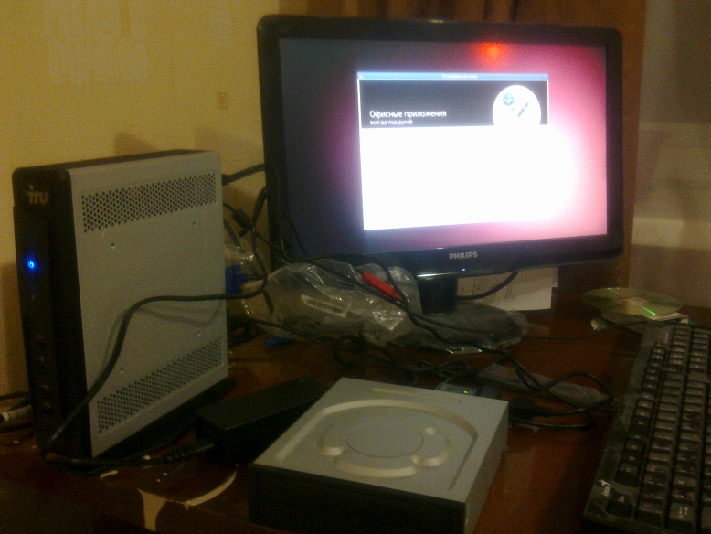 приехал комп) была проблема дома не было DVI переходника))) вообщем поставил счас убунту+емц2...