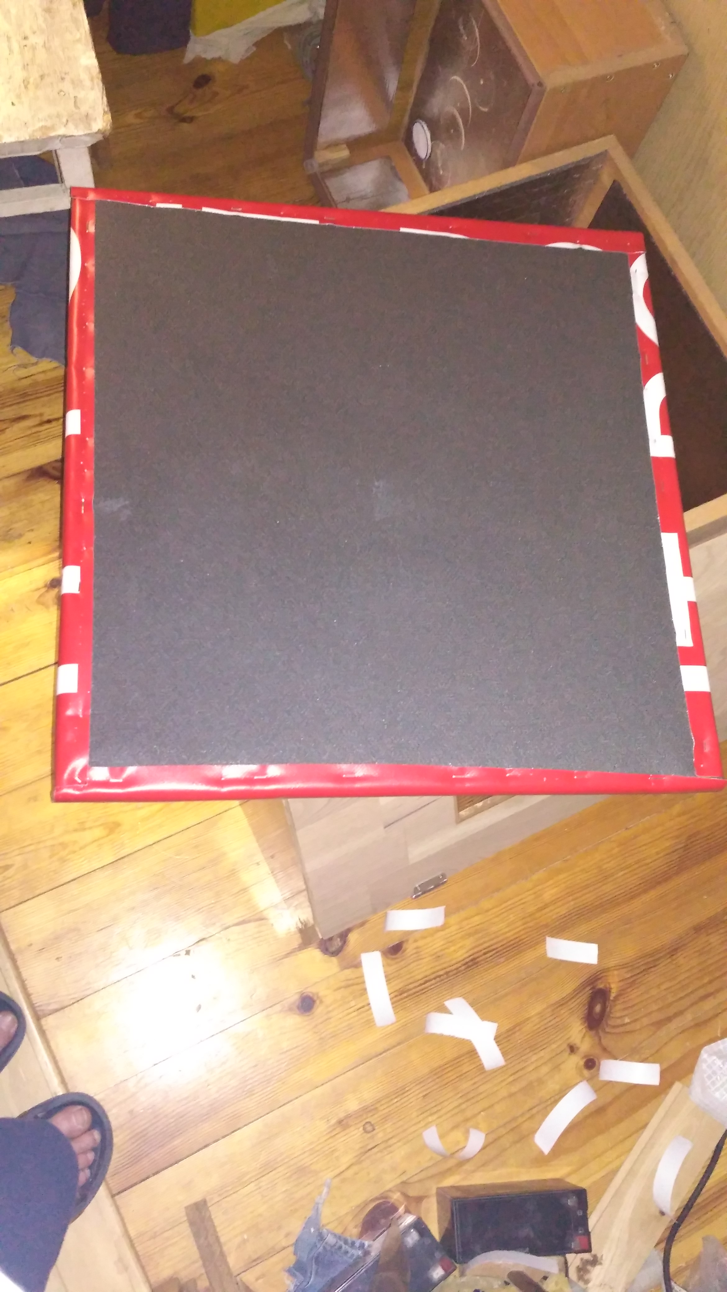 Обшил дно по периметру банером с пеной. Получился мягкий бортик, не рвется при надевании стенок. Заодно перекрыл щель между полом и стенкой.