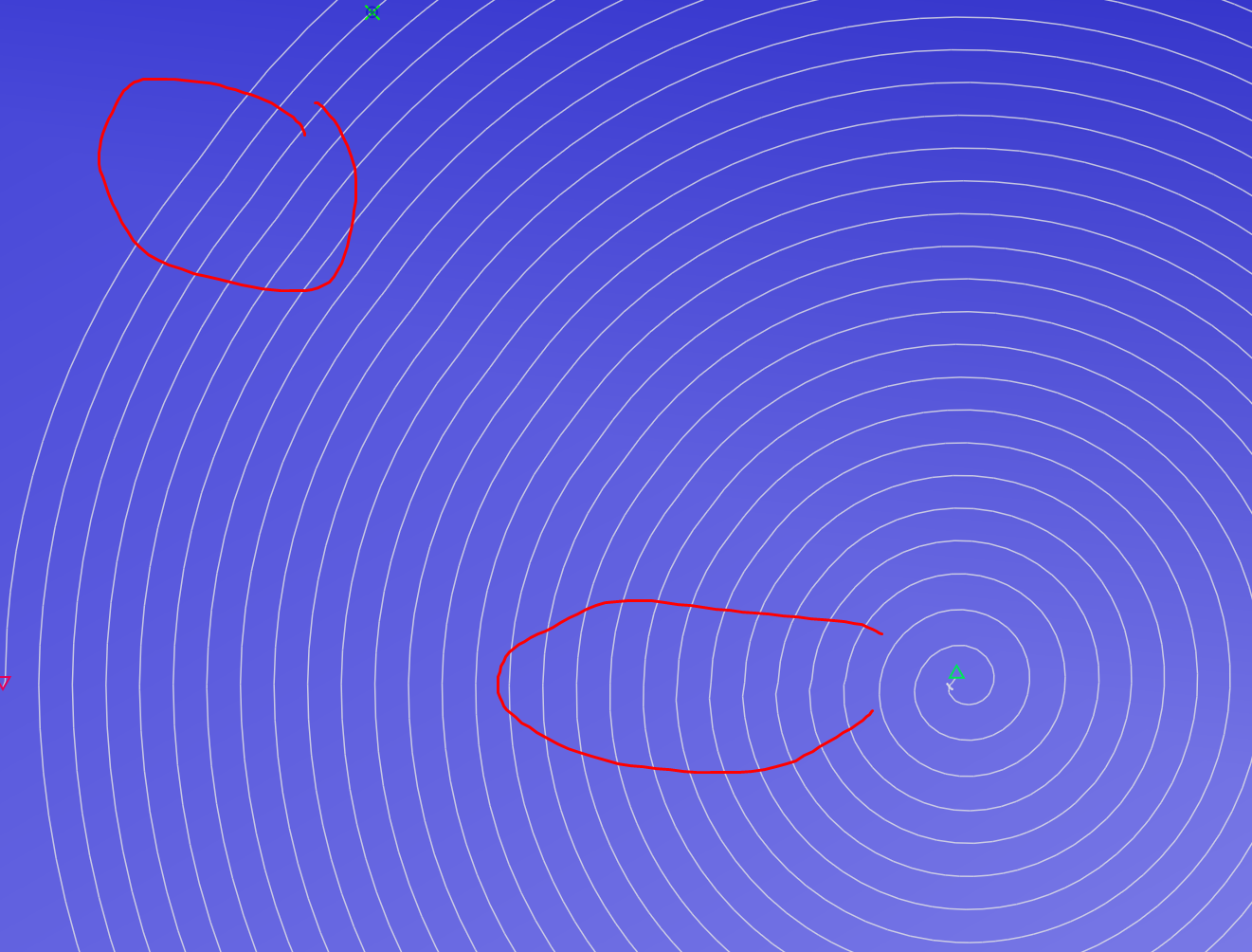 Тулбоксовую сделал, пока её пользуюсь, но в неё тоже не славо богу всё - в одном месте дуга спирали в обратную сторону сгибается, плюс какие-то баги около центра. На фото выделил. Опять же, контур задающий - ровный круг без всего...