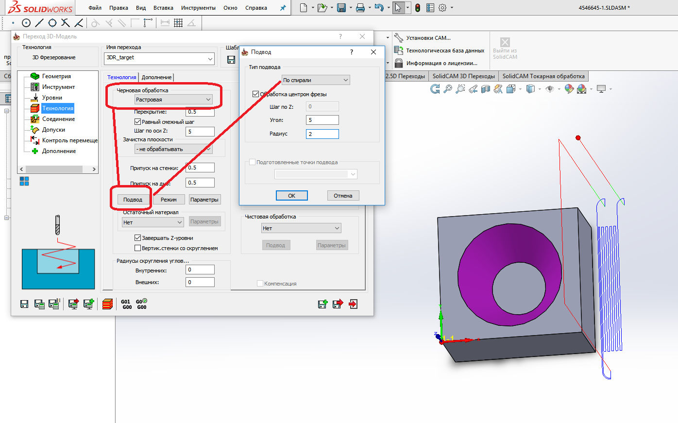 Стратегия 3Д модель. При выборе заход по спирали, его нет