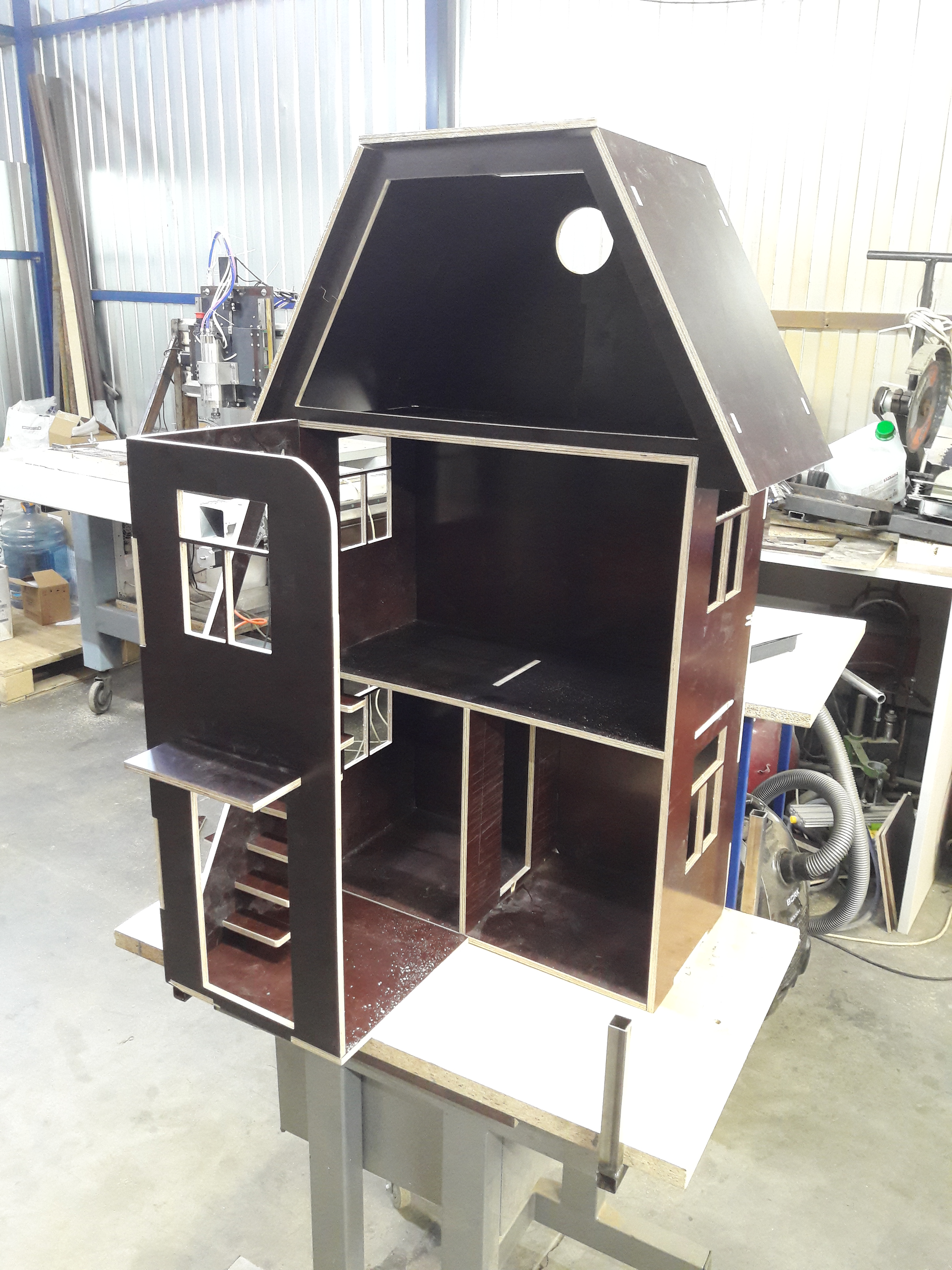 Вот тут на заднем плане виден станок ещё со стойками портала из швеллеров и зеткой из текстолита .