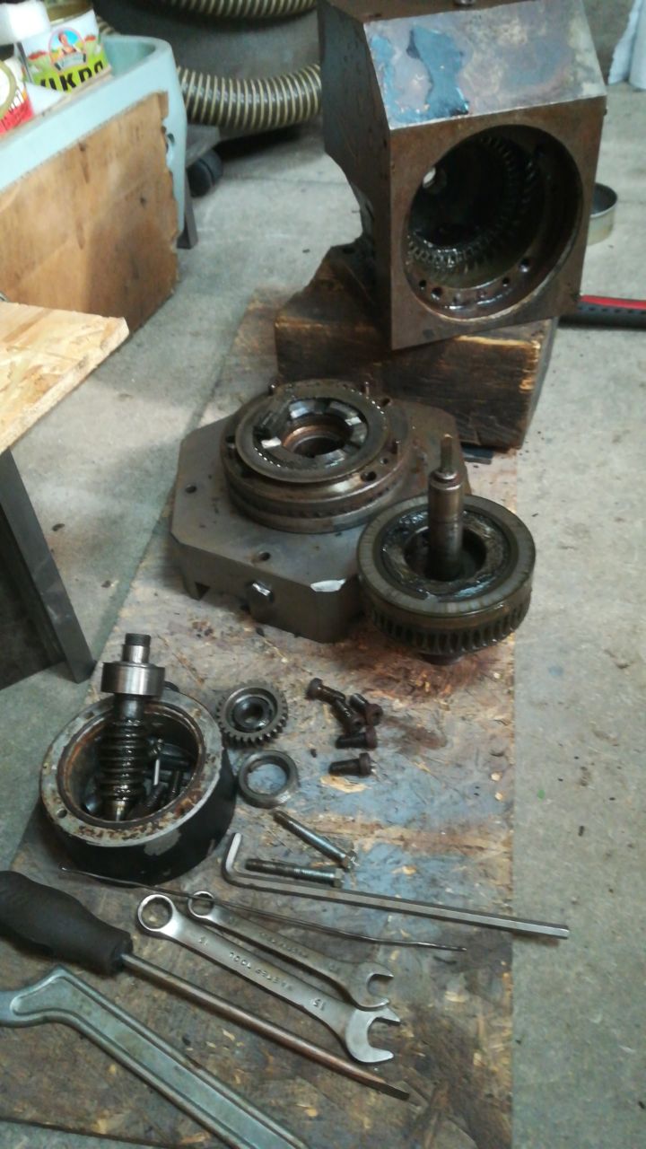 Планшайба в корпус уплотнена фторопластовым уплотнением с усилителем в виде кольца резинового, такое применяется в уплотнениях штоков ПЦ/ГЦ иногда. При сборке вставлять можно хоть когда, но если как я забыл поставить пружинку фиксатора перед снятием полумуфты Хирта кольцо надо вынуть, ставиться оно отворотом внутрь. Упорные роликоподшипники- толстое кольцо к колесу червячному, тонкое к корпусу и полумуфте. Фотосессию делать уж не стал, в каке по локоть да и торопился.