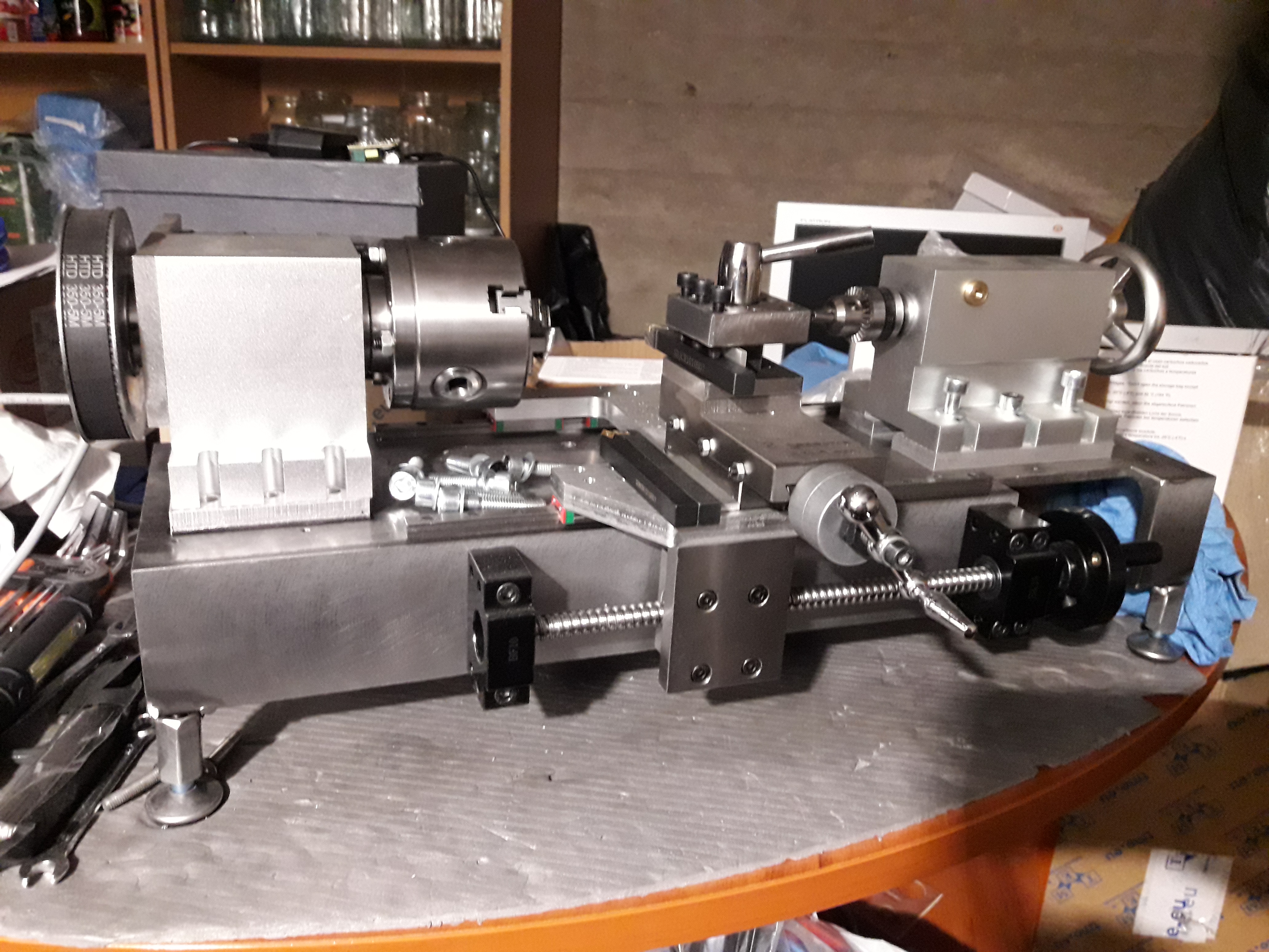 Купил такую ось именно у этого продавца с Московского склада, 2 дня на отправку, 2 дня на доставку в пункт СДЭК, итого через 4 дня после заказа ось была у меня. Вставил в патрон кусок циллиндрической направляющей 16мм длиной 200мм, покрутил рукой. Индикатор не понадобился, поскольку конец вала отклонялся миллиметров на 5. Нашел этот пост, начал разбирать. Местами, в основном на вращающемся центре и еще в паре мест, находил мелкие островки ржавчины, но не критично, они легко отмываются. Судя по наклейке на двигателе, ее сделали в 2020, и с тех пор, видимо, хранили на влажном складе. Алюминиевые части либо анодированы, либо обработаны пескоструйником (причем уже после сборки, поскольку все сопрягаемые поверхности блестели как после фрезы), поэтому в резьбах, на подшипниках и в прочих углублениях был песок и капли какой-то протухшей жижи. В остальном могу сказать, что сделано достаточно хорошо за свои деньги, использовать можно. Патрон годный, улитка и кулачки каленые, шлифованые, хорошо отцентрированные. На этой модели патрона (SANOU K01-50) кулачки можно развернуть. После отмывки всего и вся вдшкой и смазки баллистолом ничего не скрипит, крутится двигается плавно.