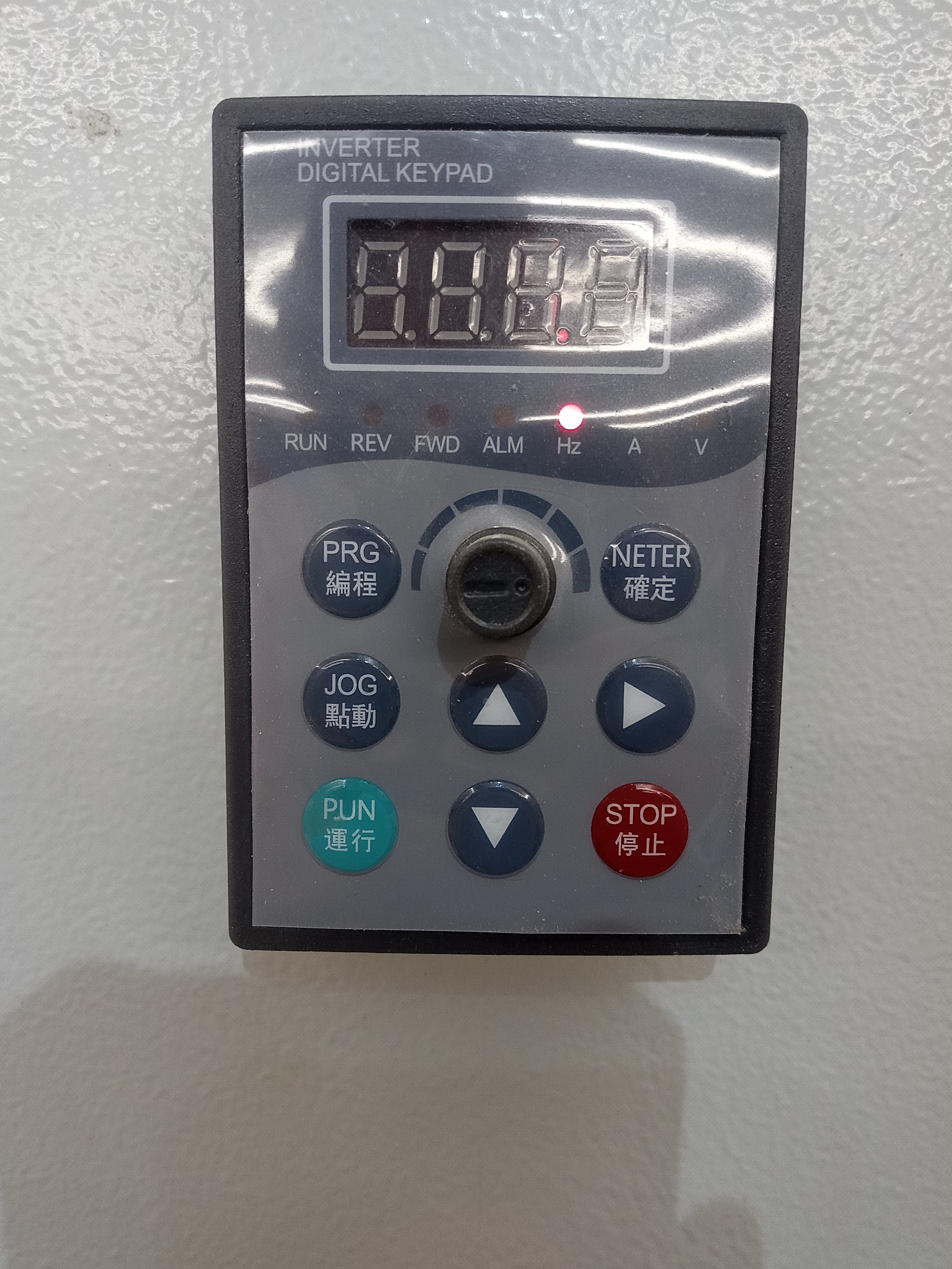 Панель управления частотником (на фото) никогда не трогал, не разбирался в нём. Цифры всегда были одни на дисплее, даже не вспомню какие. В один день появился скрип, свист при работе шпинделя, посмотрел на дисплей, а там другие цифры.