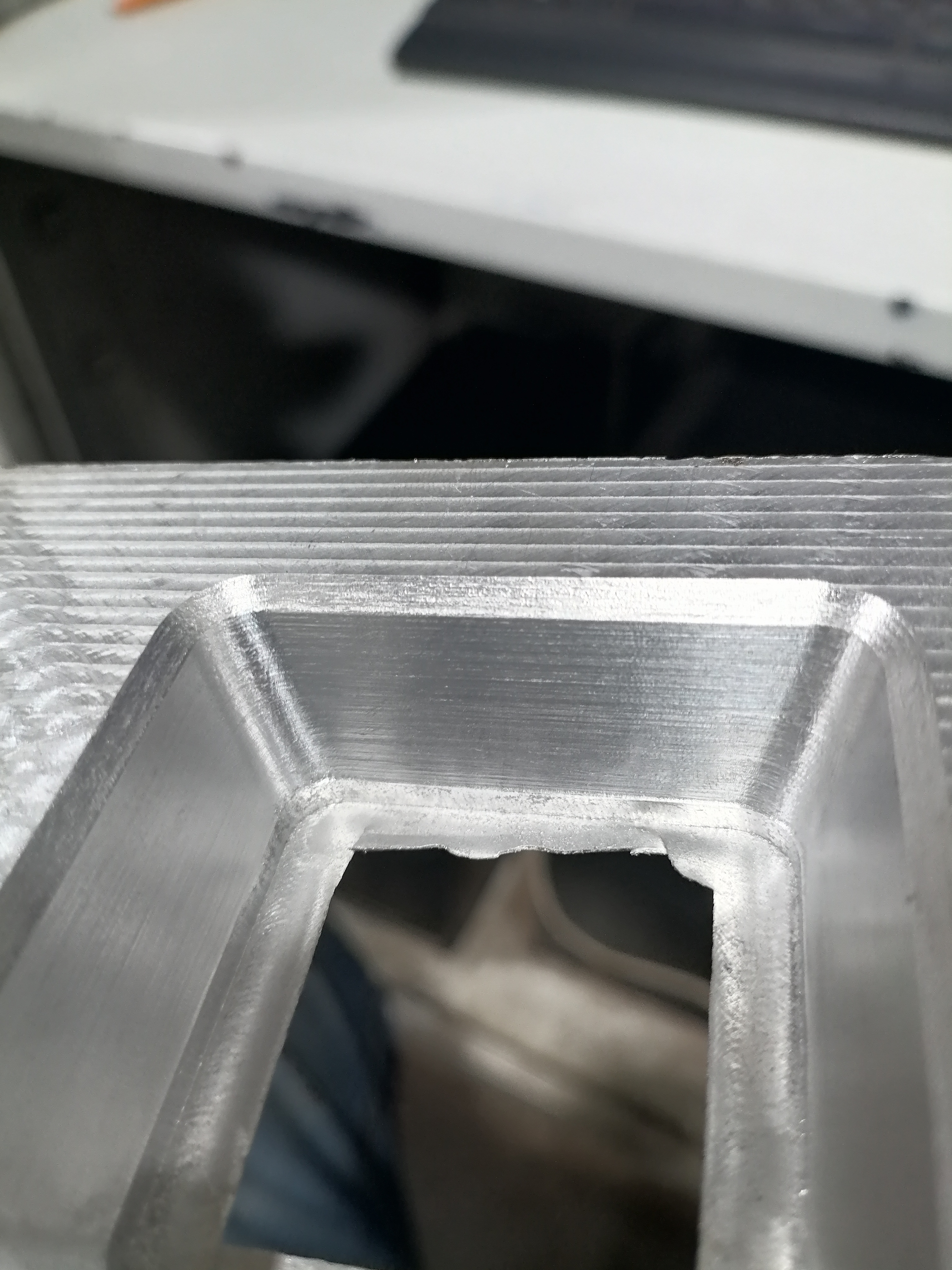 При 3д обработке алюминия конусной фрезой с радиусом 0.5 на левой и правой стенках все чисто, а на ближней и дальней стенках остаются ощутимые полосы. Программу писал в арткаме: стратегия обработки смещенная 3д спираль, шаг по z 0,08мм шаг смещения 0,08 мм. Пробовал разными фрезами на разных станках, с шагом тоже игрался - результат одинаковый слева и справа норм, спереди и сзади полосы. Что посоветуете?