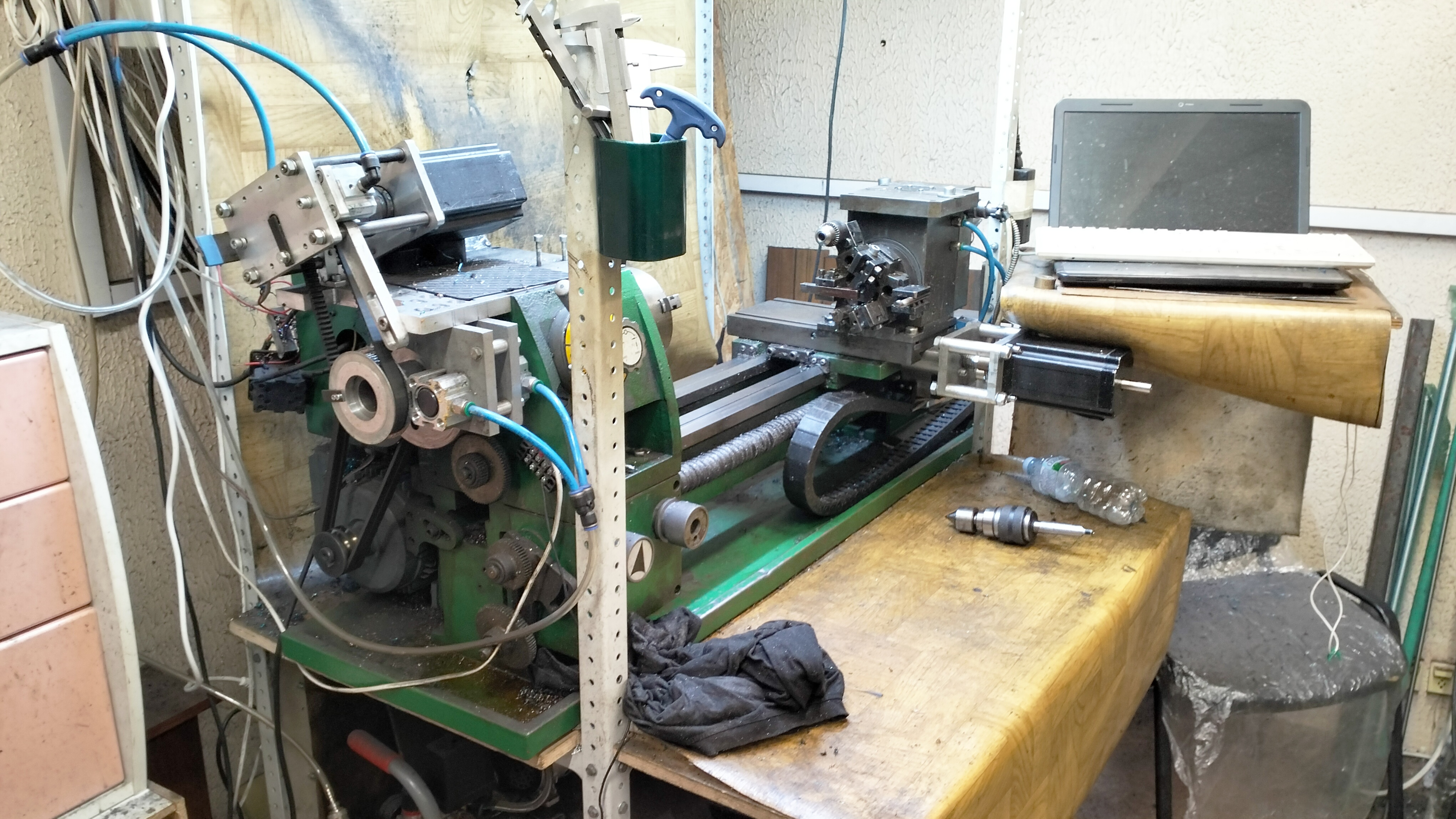 - Автоматически подключаемый к шпинделю шаговый двигатель, который позволяет поворачивать шпиндель на заданный угол. Например, для нарезания шестерен. www.youtube.com/watch?v=IQu-jNWDIGY