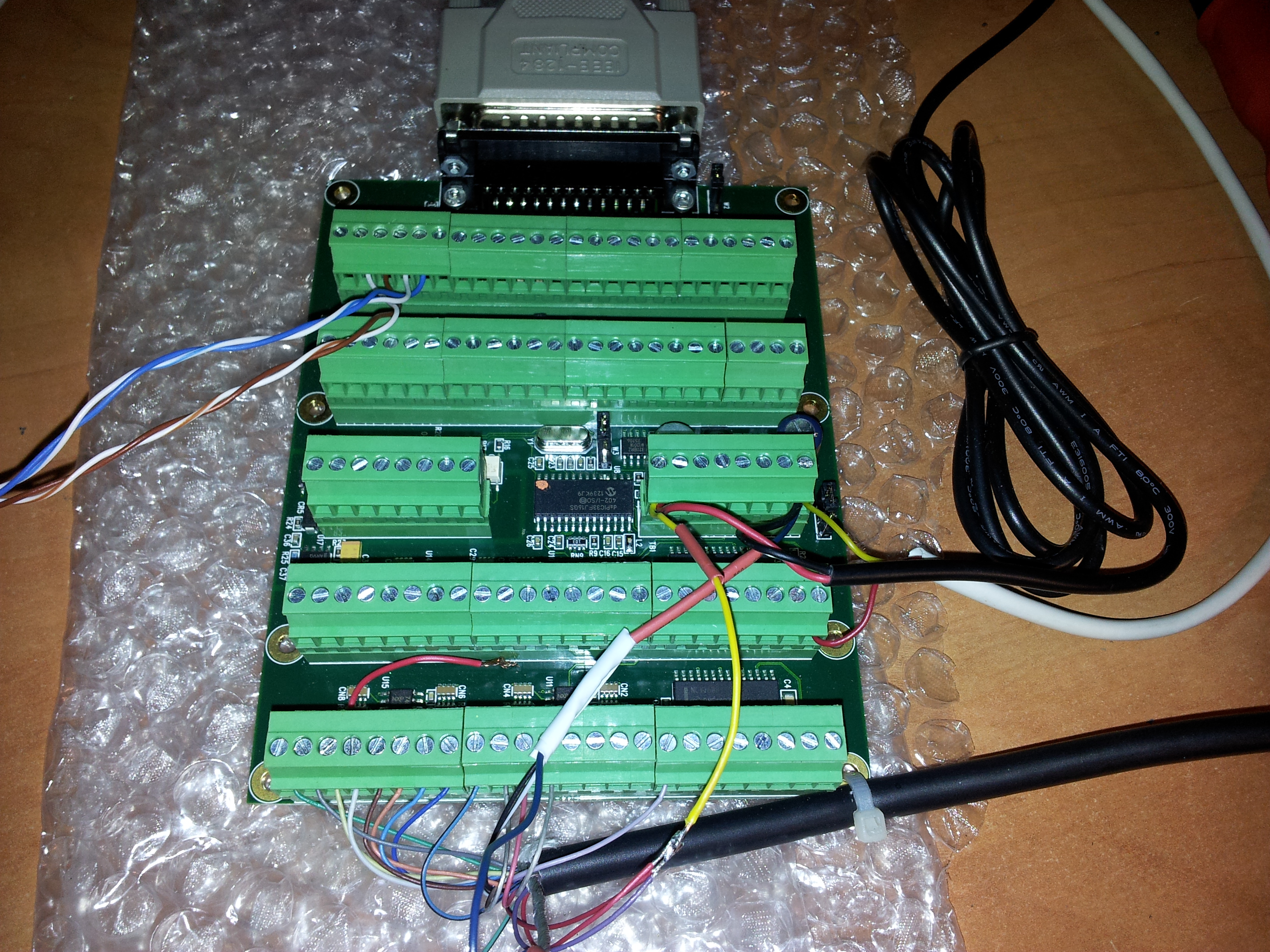 1. Все 32 входа на 7i76 работают, т.е. при подаче на них лог. единицы в хал конфигураторе зажигается соответствующий пин, если он связан с выходом то на выходе тоже зажигается пин, но напряжение на пине не появляется...