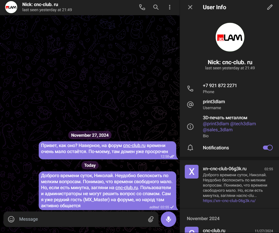 тем более что хозяева чата в тг решили, что конкретно мне не нужно общаться ни с кем по станочным делам. они селекцию проводят - кому можно, а кому нет.
