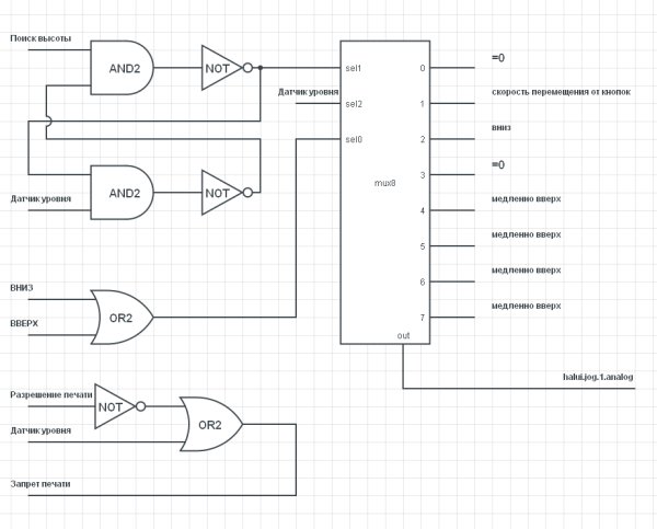 Если нажимаем кнопку "Поиск высоты печати" (даже кратковременно) - начинается медленное движение вниз до срабатывание "Датчика Уровня" и подъема вверх до отпускания этого датчика.