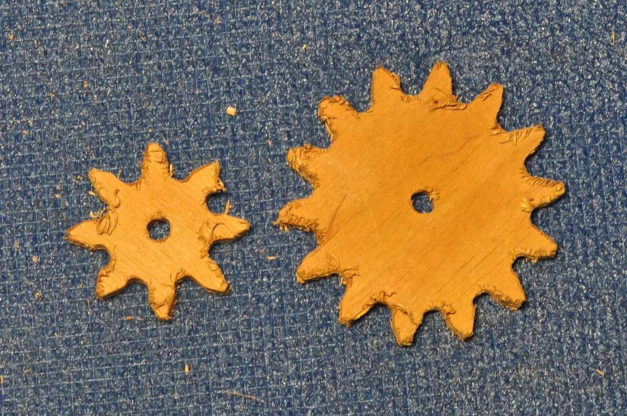 Но честно говоря мои шестеренки работали из рук вон плохо, т.к. сильно хромала точность изготовления, да и фанерка была тонкой. Видел сайт человека, который тоже делал шестеренки из фанеры, у него лучше получилось :hehehe:.