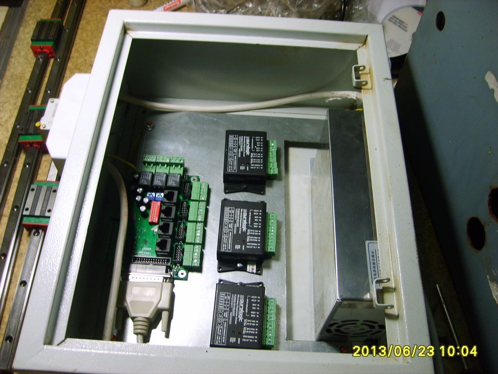 Да с одной стороны, мощная рельса, регулируется по горизонтали в доль станка и по высоте регулировочными болтами и прижимается с низу болтами к площадке. Станок консольного типа. Приводится вдоль по X 1 м мощным двигателем, что исключает перекос портала. Дигональ портала выставляется регулируемой штангой. Подшипники на каретке по X эксцентричны что позволяет убрать люфты в любое время, в случае их появления.aftaev писал(а):несущий рельс портала получается только с одной стороны?