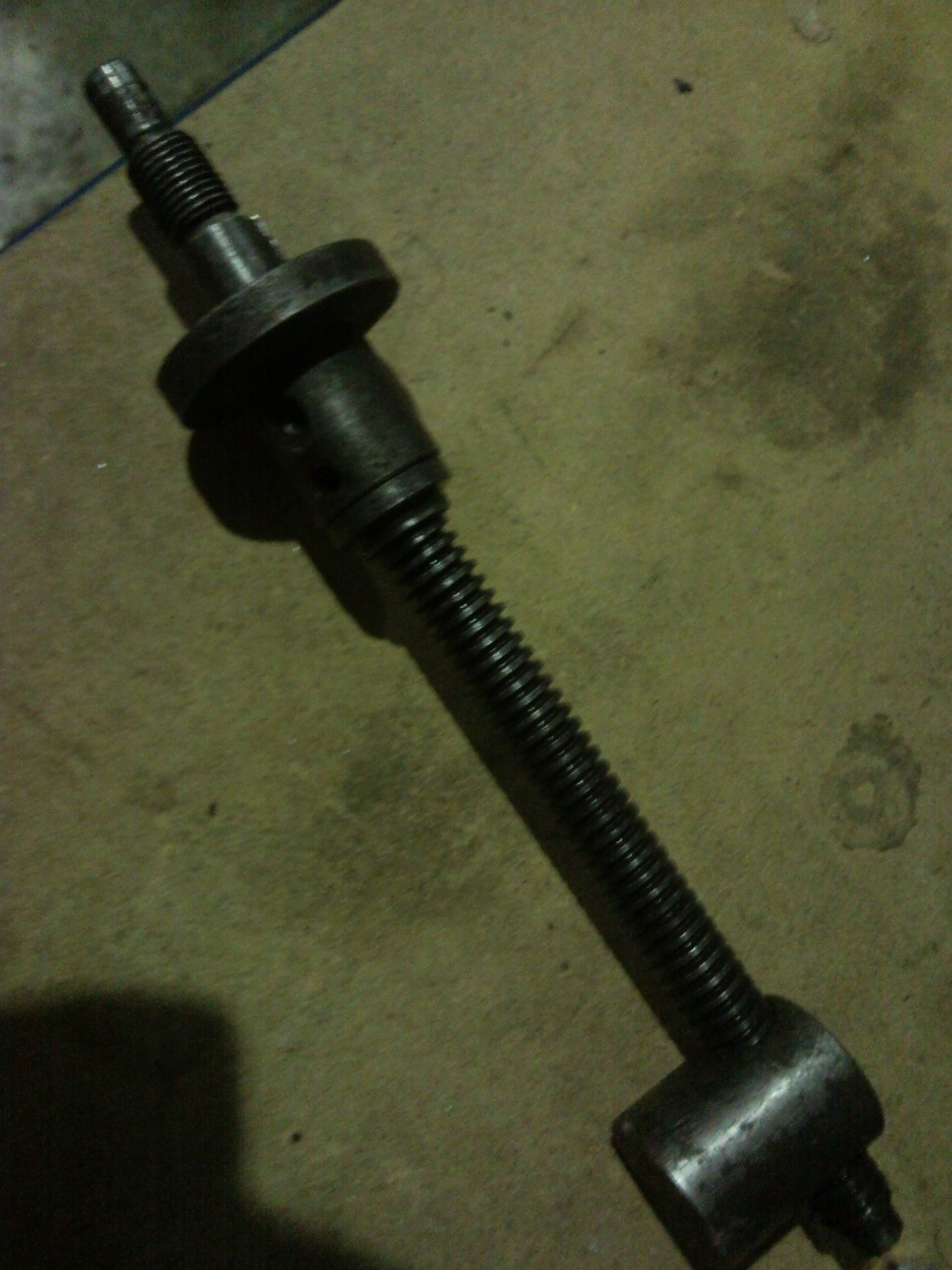 И еще подогнали винт с какого-то токарника кажется, диаметр 14мм, шаг не знаю! Люфт пальцем не ощущается.