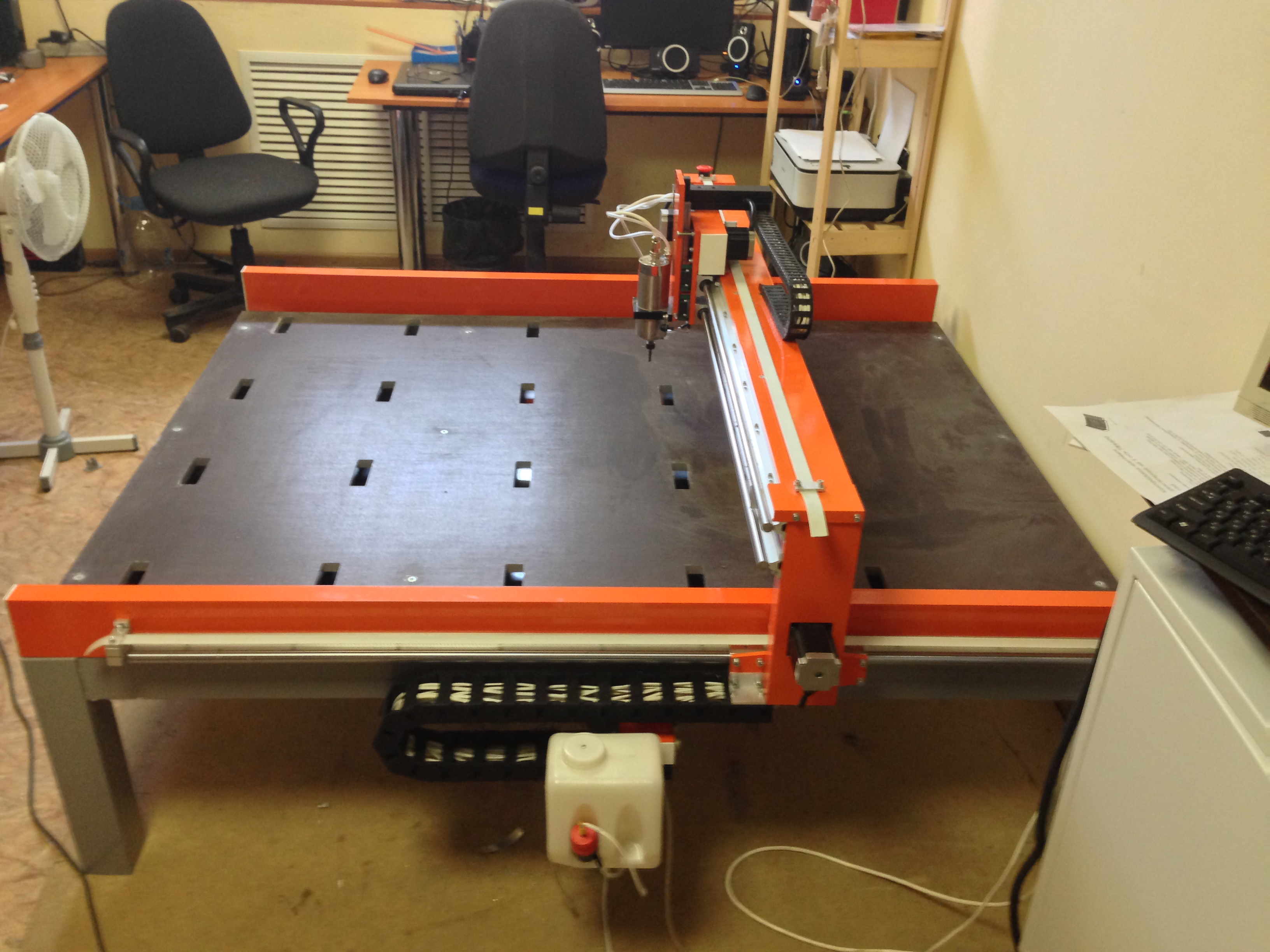 За перемещение по осям X, Y, Z отвечают 4 независимых 2-х фазных биполярных шаговых двигателя. Шаг составляет 1,8 град. Индивидуальный привод перемещения портала, суппорта и шпинделя по осям обеспечивает высокую точность перемещения до 0,015мм.