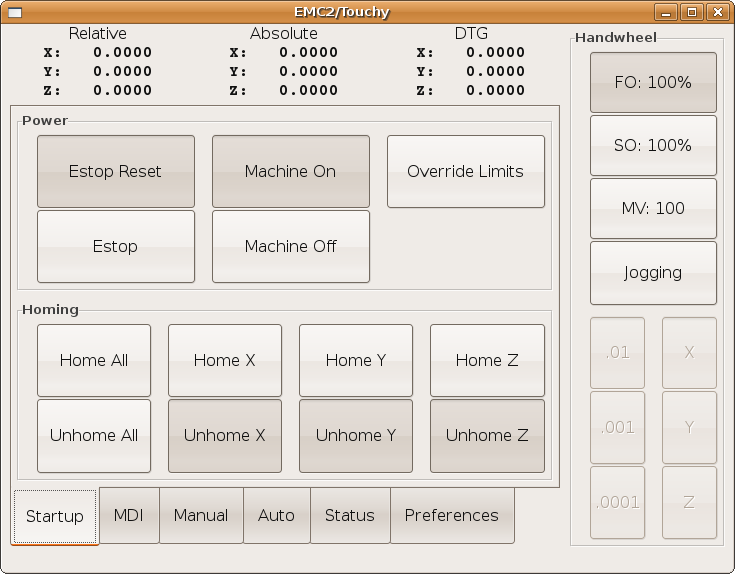 Touchy - специально разработан для тачскринов. Удобен на станках, у которых есть консоль управления с тачскрином. Не требует клавиатуры и мышки.