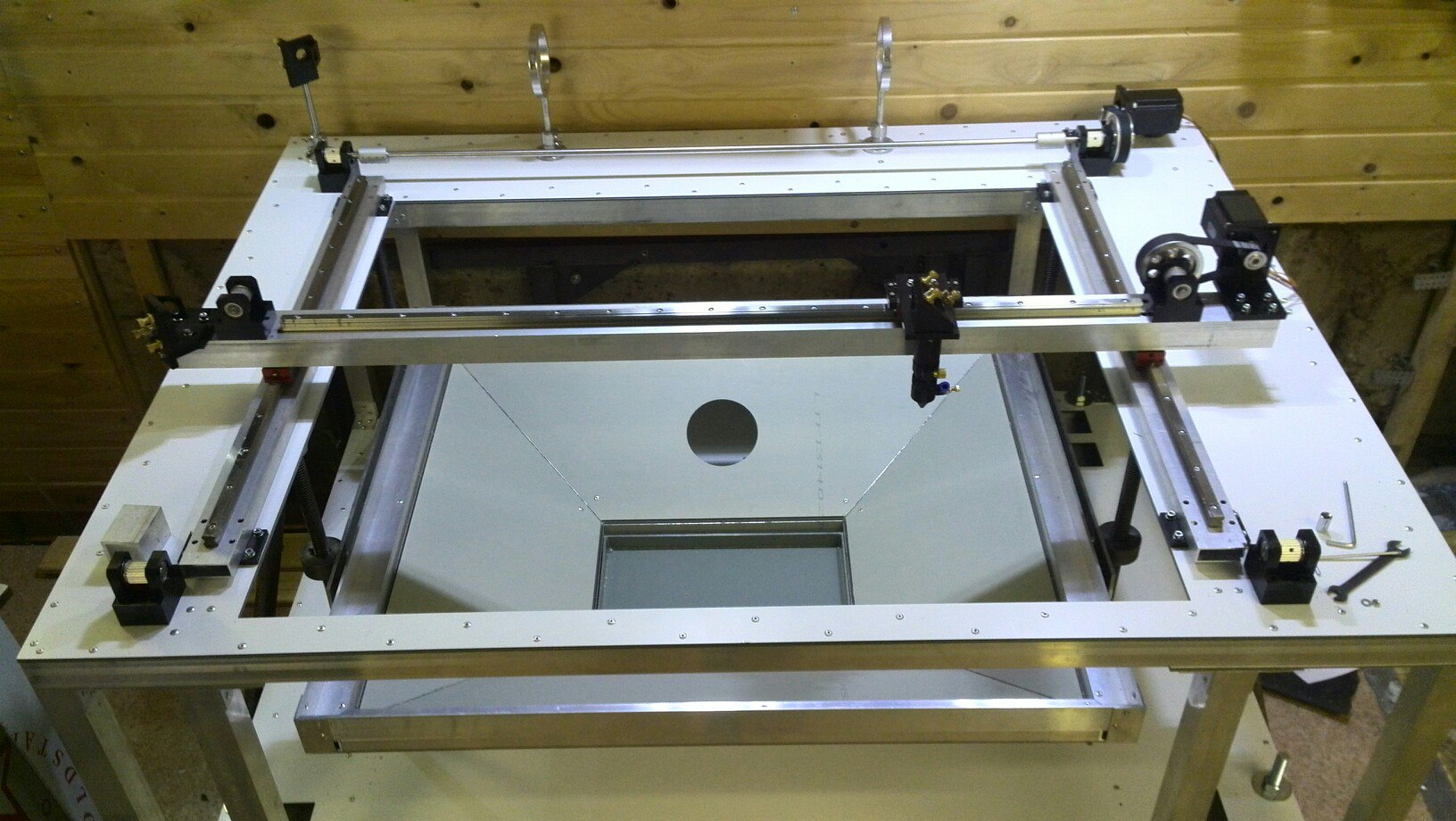 Раму делаю сборную из алюминия, (вот сейчас и делаю =)) Электроника будет в столе, вытяжка уже стоит на своем месте.
