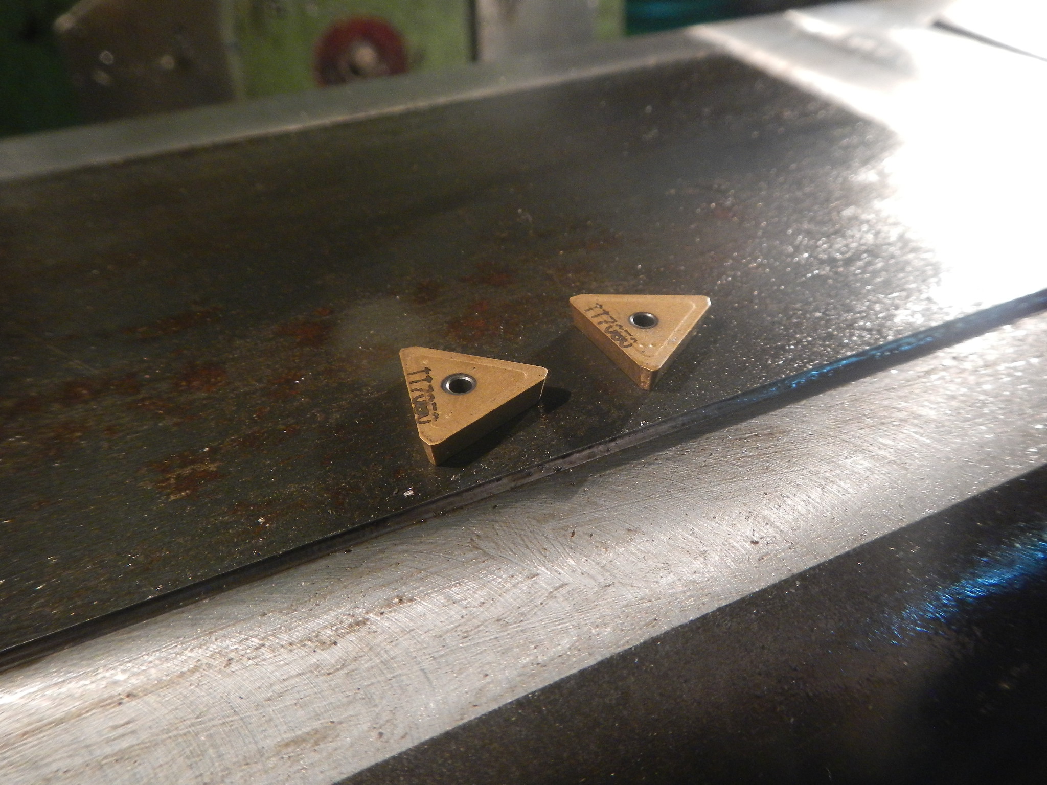 Вот такие пластинки поставили на чистовую обработку. По ощущениям - режут они также... Поверхность чуть более блестящая но как мне кажется это из-за более маленького съема...