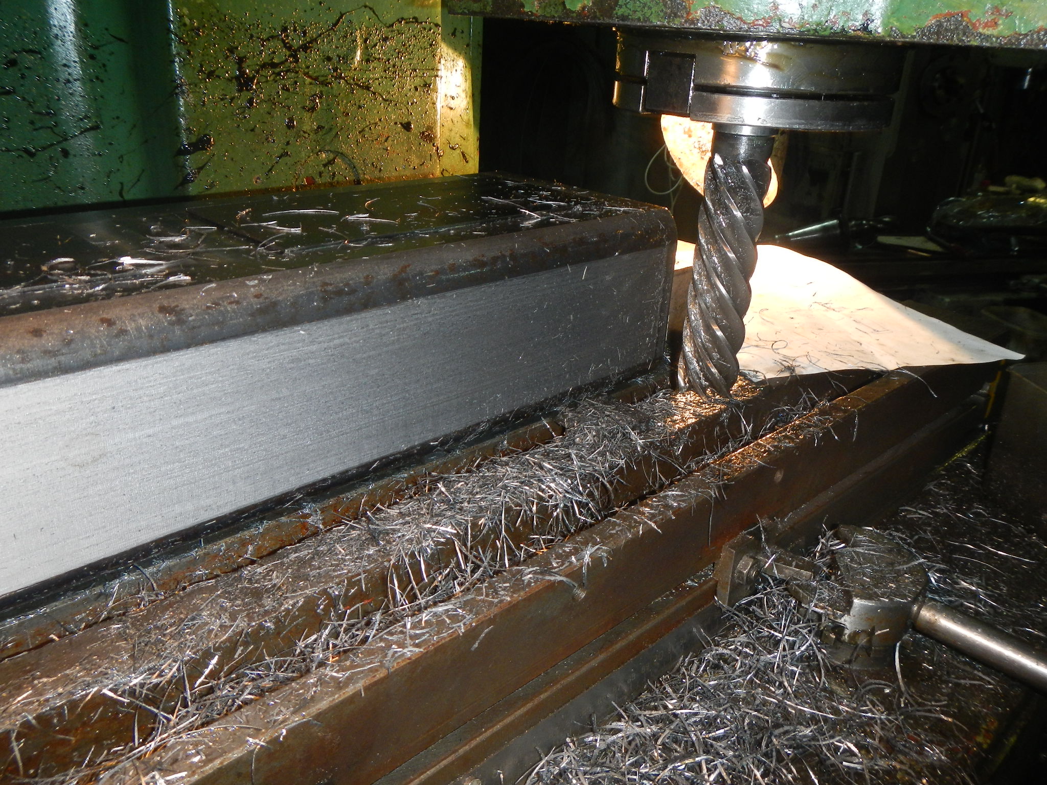 Потом начали фрезеровать торцы. Взяли большую длинную фрезу и по чуть-чуть сняли одну сторону. Стружки она делает просто нереальное количество :).
