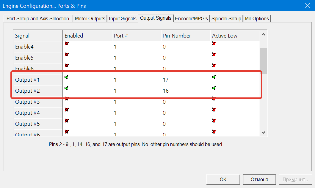 В первую очередь стоит исключить дублирование сигналов, настроенных на 16 и 17 линии LPT.