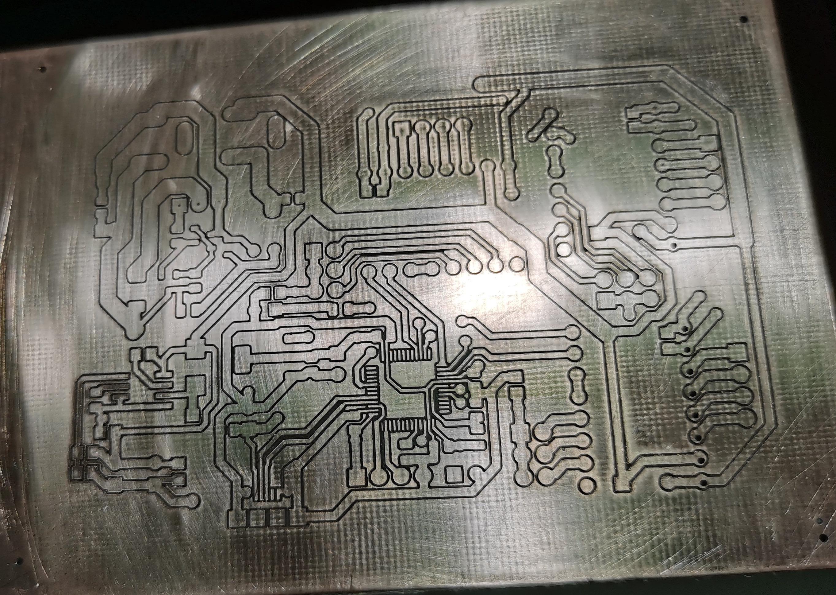 Начал делать платку. Вроде вышло хорошо. А потом бац, когда решил просверлить дыры, когда обнулял Z для сверла, и потом запустил сверление, забыл подклчючить БП мотора шпинделя)) Чтоб не сломать единственное сверло, я резко выдернул юсб. Сверло спас, но потерял начало координат