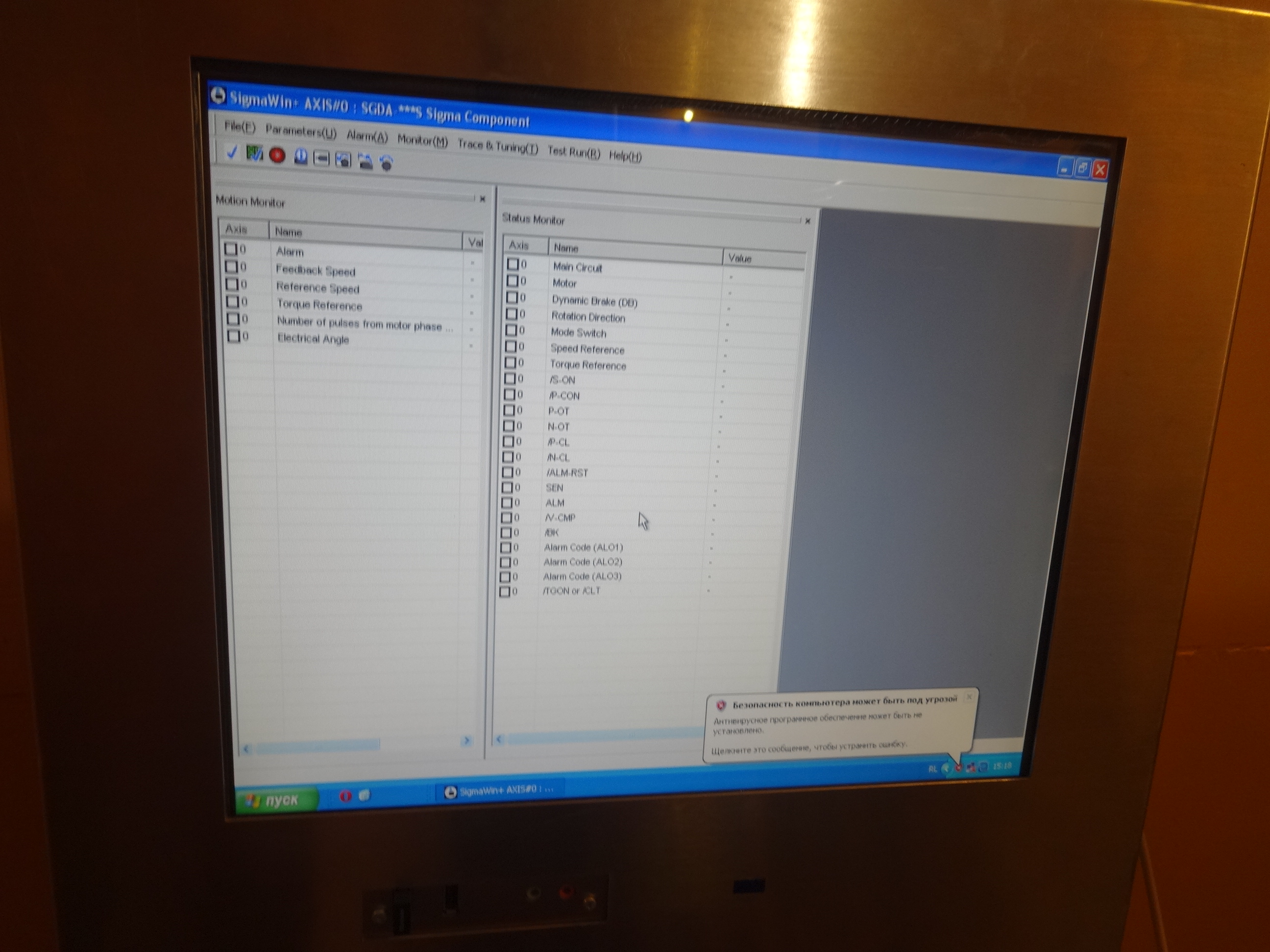 в сигмавине для серв серии сигма (SGDA-AS)есть же где-то индикатор нагрузки сервы при работе? где? нужно отстроить усилие противовеса оси Z как-то. можно ездить осью и мониторить нагрузку мотора?