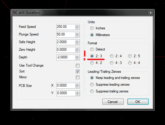 Еще вопросик. Попробовал загрузить файл сверловки из Диптрейса, но он почему то уменьшен в размерах. При загрузке выбрал "мм" и PCB Size как реальный, получилось раза в 3 меньше реального.