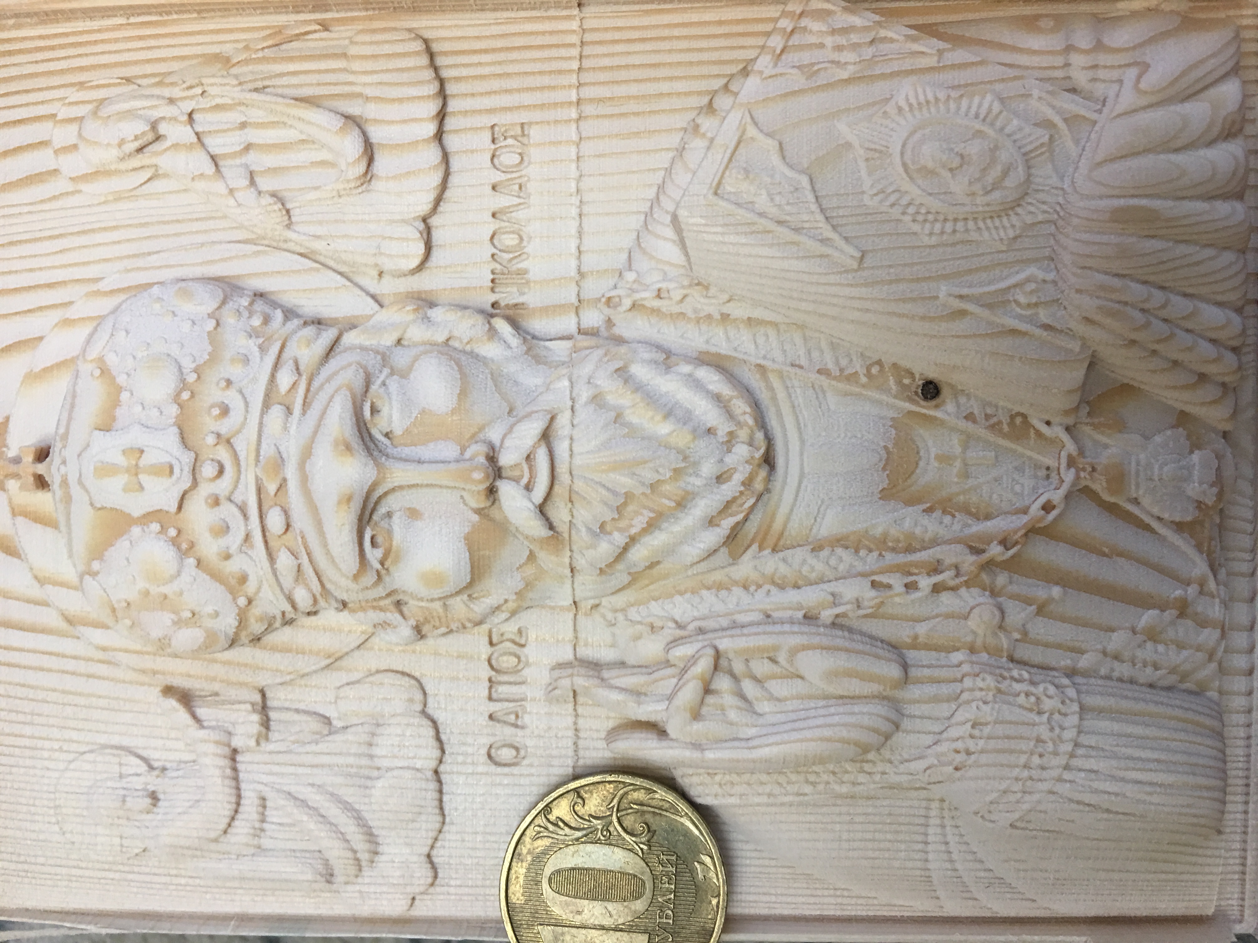 фото иконы ещё без дополнительной обработки, чисто из под фрезера. материал сосна для обучения.