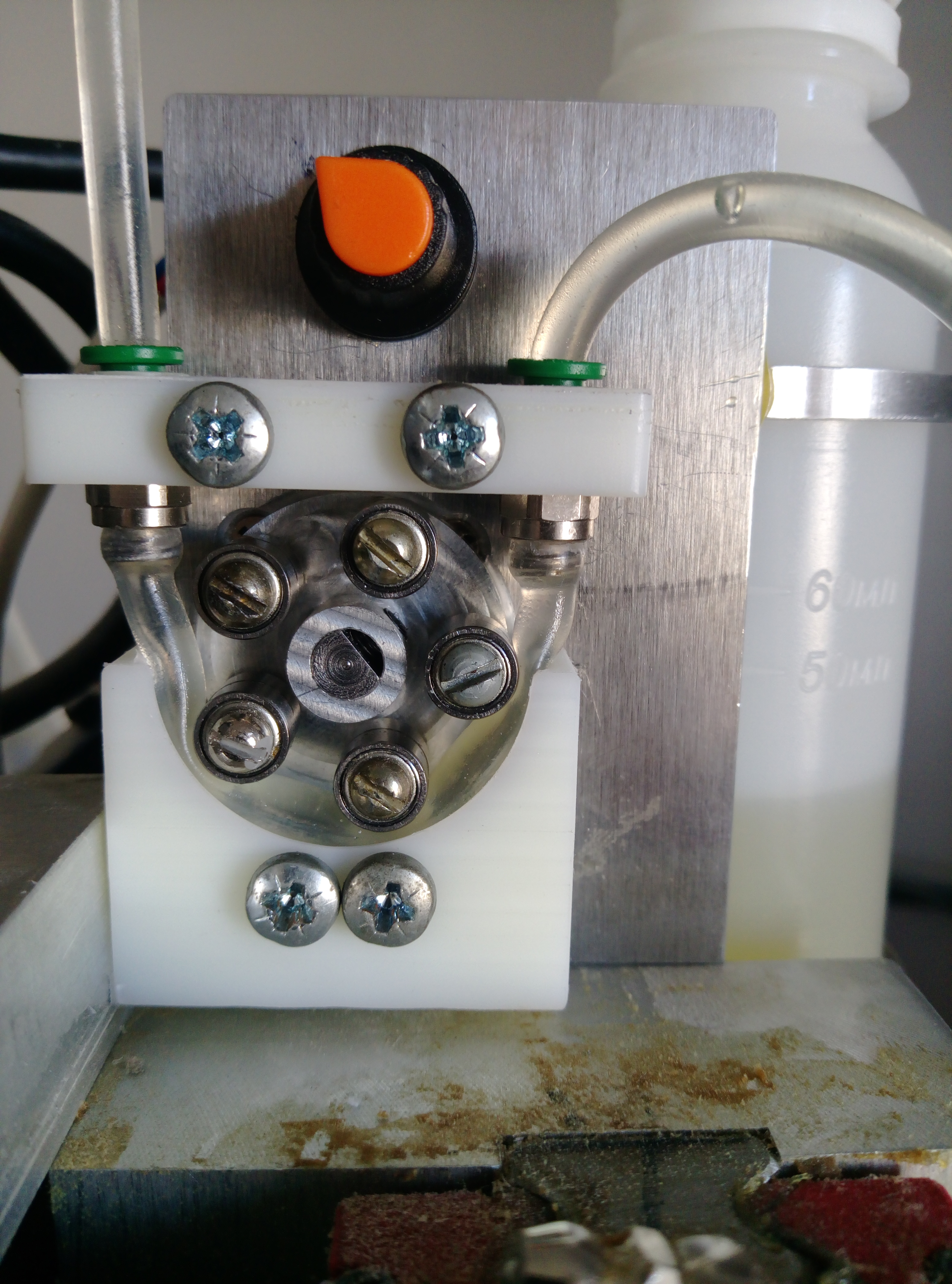 У меня счас подача СОЖ сделана через капельницу, игла которой заведена в выходное отверстие для воздуха.