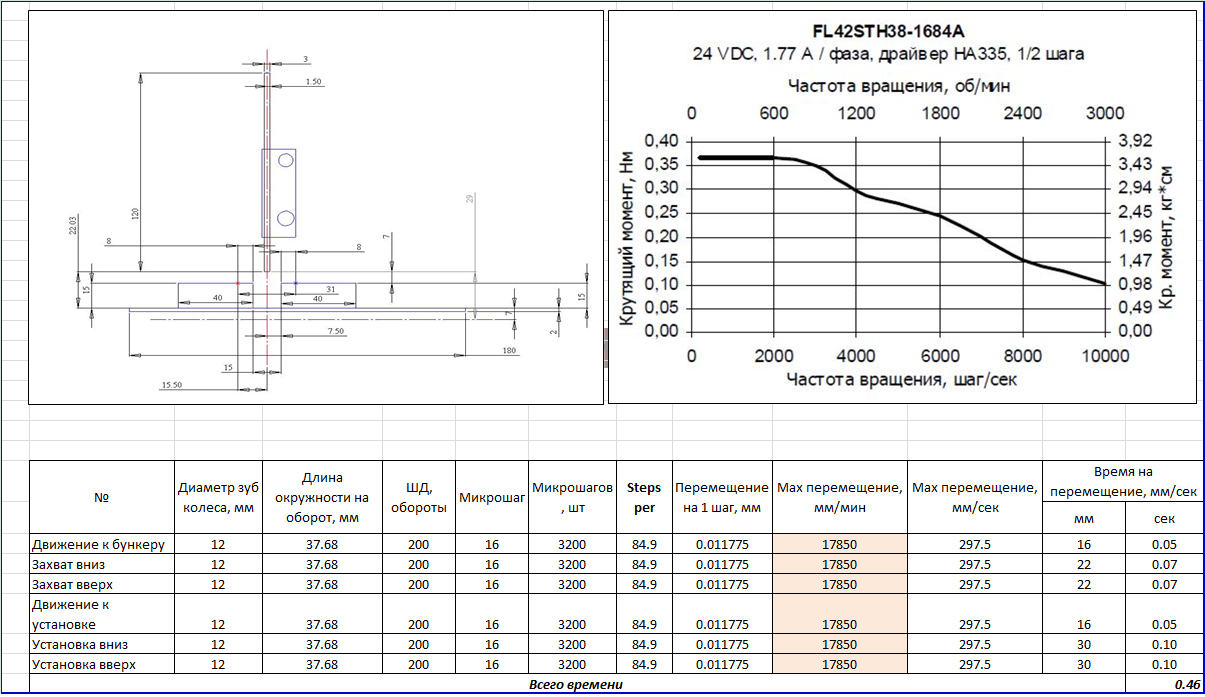 Есть сомнения в расчете - уж очень быстро все! Параметры двигателя на 1/2 шага а я считал на 1/16 в этом может быть ошибка?