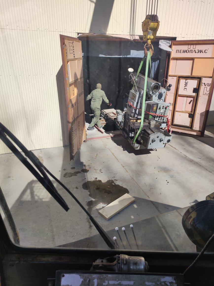 А вот сходу застроповать станок не вышло, высоты не хватает.