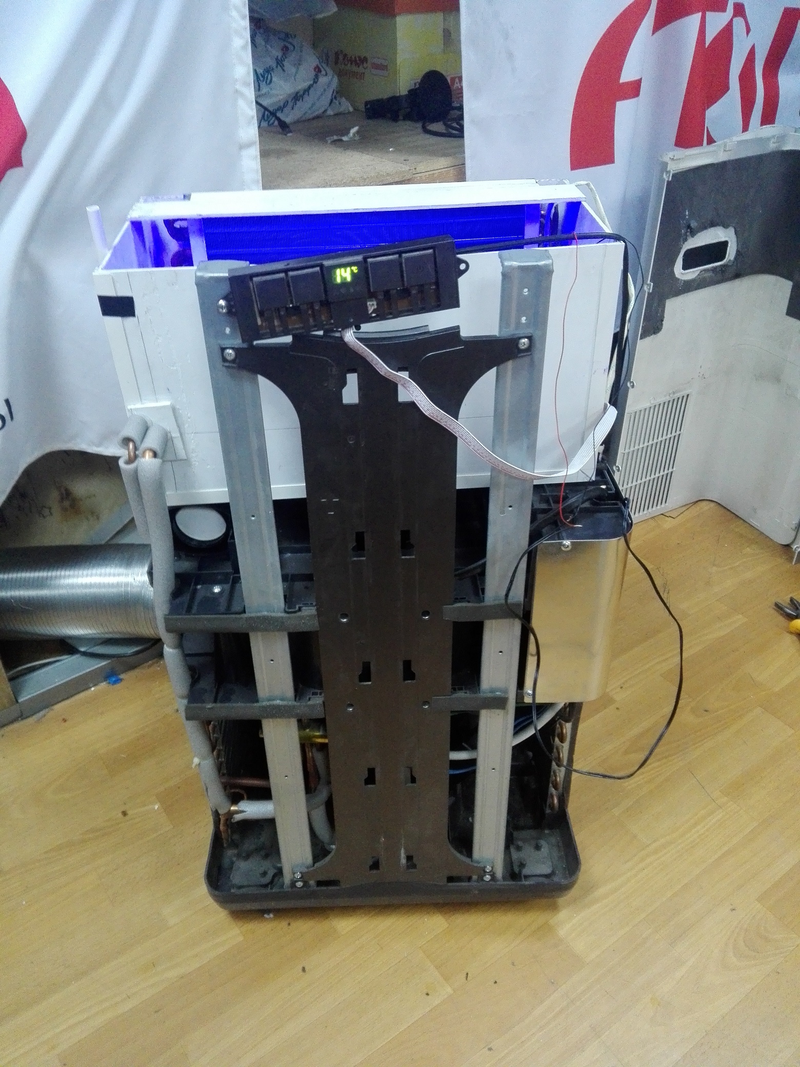Осталось спрятать провода, установить индикатор температуры на место и собрать корпус кондея.